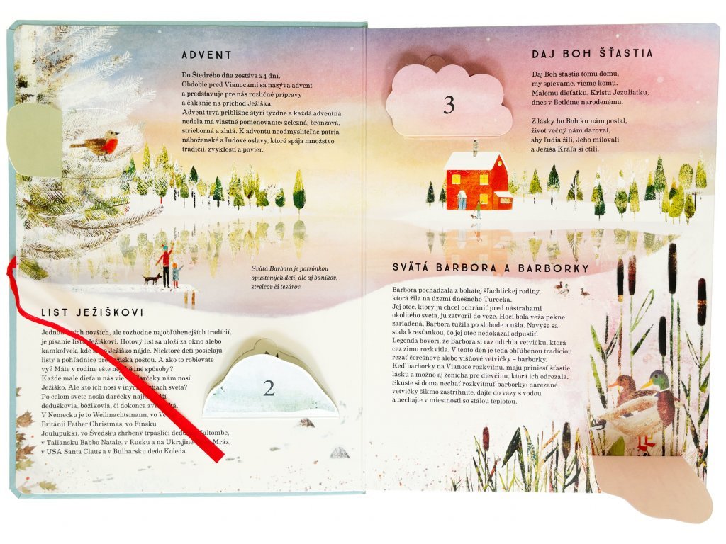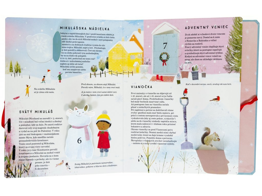 Objavte spolu s deťmi kúzlo pravých slovenských Vianoc. Táto nádherná rozkladacia kniha vás prevedie 24 adventnými dňami – od zapálenia prvej sviečky na adventnom venci až po čarovný Štedrý večer.