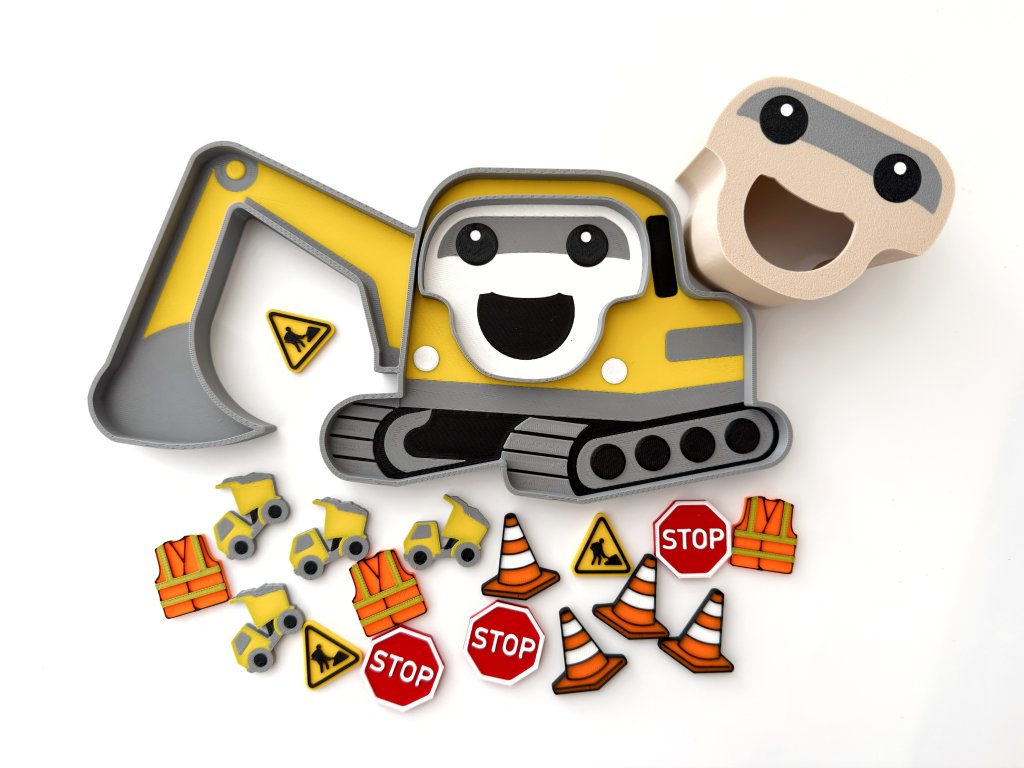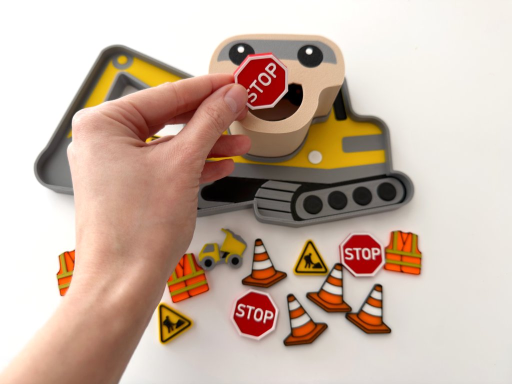 Bagrik čaká, stavba môže začať. Táto senzorická sada je stvorená pre deti, ktoré milujú autá, stroje a všetko, čo sa hýbe — a zároveň prirodzene rozvíja to, čo rodičia ocenia najviac.