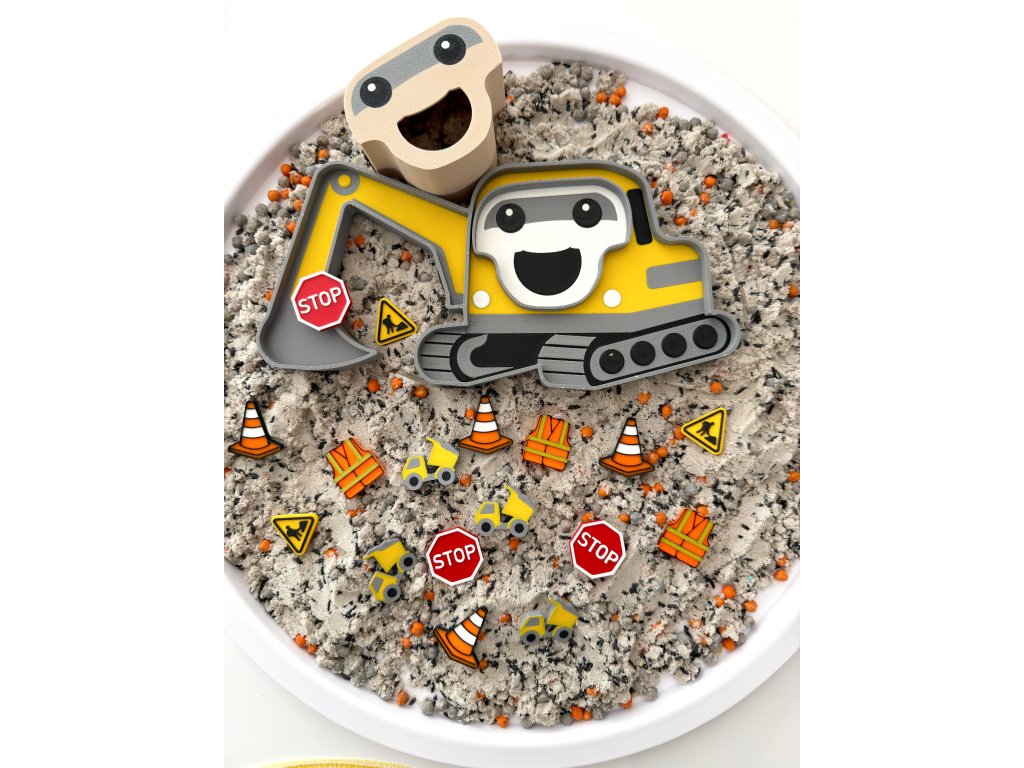 Pripravte sa na poriadnu dávku kreatívnej hry. Sada je výborným pomocníkom pri senzorických hrách alebo tematické hranie - na stavenisku, doprava či na použitie v domácom protredí a herničkách.