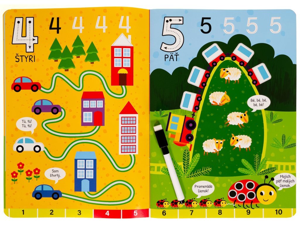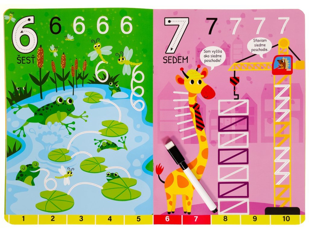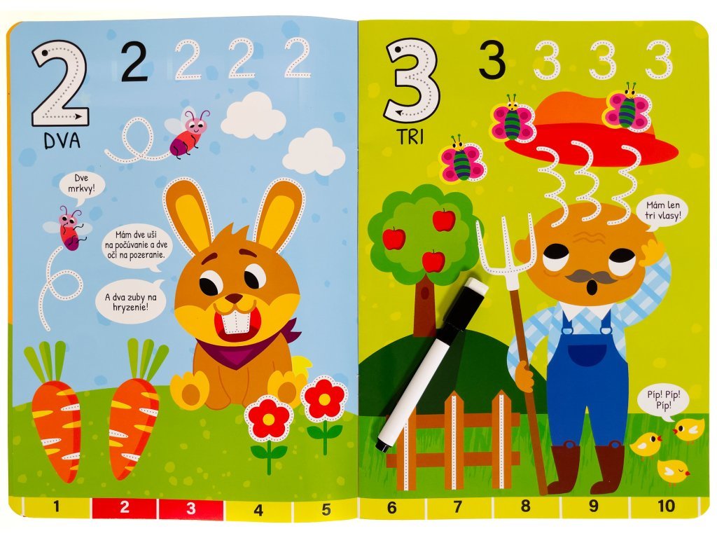 Zošit s pevnými, lesklými stránkami je ideálny pre deti, ktoré sa učia svoje prvé ťahy, detailnejšie linky, písanie čísel a základy počítania. Nemusia sa obávať chýb – vďaka stierateľnej fixke, ktorá je súčasťou zošita, môžu úlohy skúšať znova a znova.