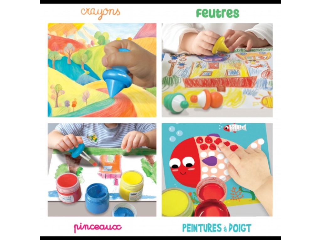 Používanie umeleckých nástrojov rozvíja jemnú motoriku, koordináciu ruka–oko, kreativitu aj predstavivosť a zároveň prispieva k emocionálnemu a mentálnemu rozvoju dieťaťa. Sada je vhodná pre deti od 3 rokov a predstavuje ideálny začiatok ich umeleckého dobrodružstva.