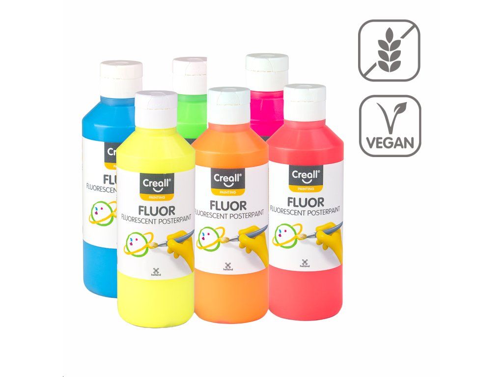 Fluorescenčné temperové farby majú vylepšenú formulu, ktorá zabezpečuje intenzívnejšie farby, lepšie krytie a vyššiu odolnosť výtvorov. Vysoký obsah pigmentov vytvára jasné a žiarivé odtiene, ktoré detské kresby a maľby krásne oživia.