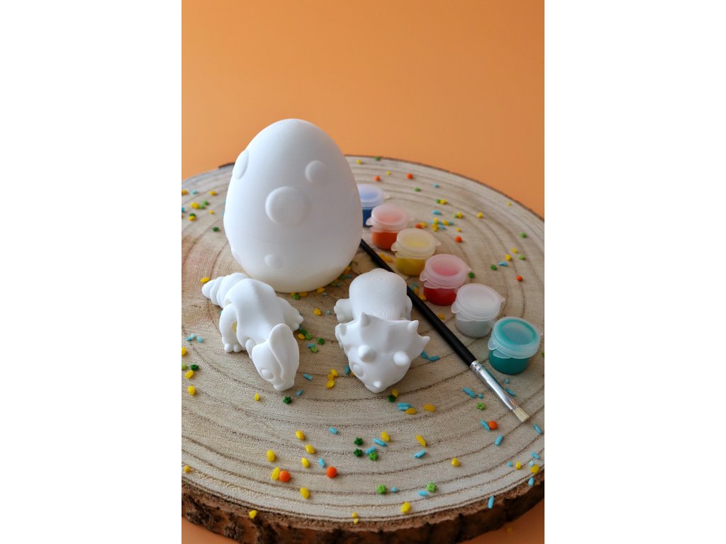 Vajíčko aj dino postavičky sú vyrobené z ekologického PLA plastu ( tento materiál je vyrobený z obnoviteľných zdrojov, ako je kukuričný škrob či cukrová trstina) Farby na vymaľovanie vajíčka a dinosaurov sú vhodné pre deti - spĺňa normu EN-71.