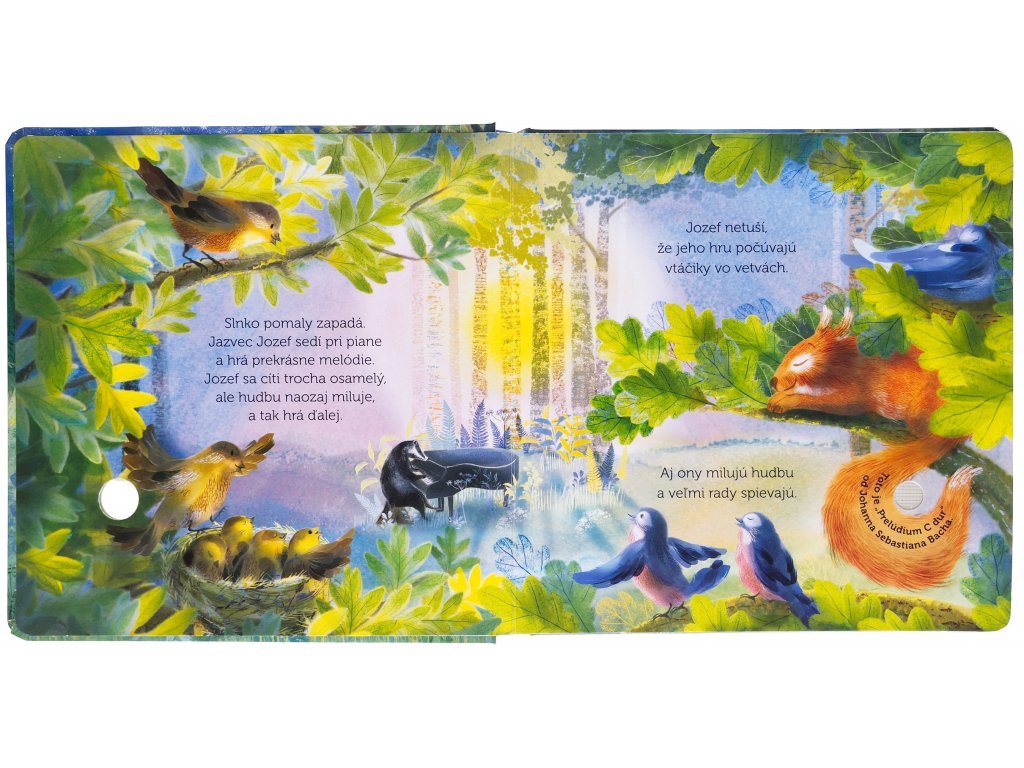 Táto interaktívna kniha s hudbou je ideálna na spoločné chvíle s deťmi – pomáha rozvíjať ich lásku k hudbe, umeniu aj prírode.