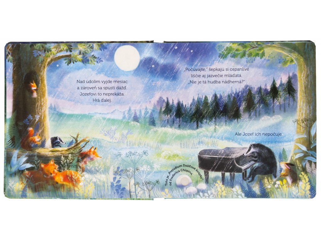 Započúvajte sa s deťmi do pokojných melódií klasickej hudby v jedinečnej zvukovej knihe. Osamelý jazvec hrá na piano, ale zdá sa, že nemá nikoho, komu by svoje umenie daroval. Je to však naozaj tak? Krásne tóny prilákajú zvieracích kamarátov a spoločne zažijete kúzlo hudby aj priateľstva.