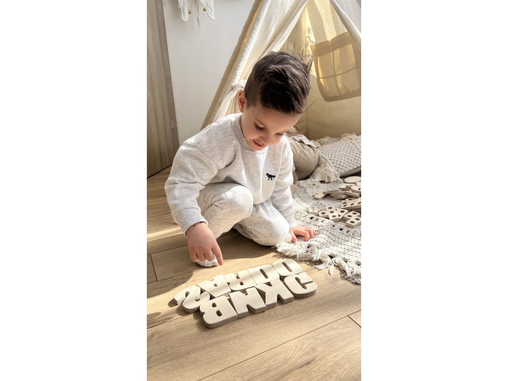 Každé písmeno je starostlivo vyrezané z kvalitného dreva, ktoré poskytuje hladký povrch príjemný na dotyk. Táto Montessori hračka zapája viacero zmyslov a ponúka hmatový zážitok, ktorý stimuluje kognitívny rozvoj a jemnú motoriku.