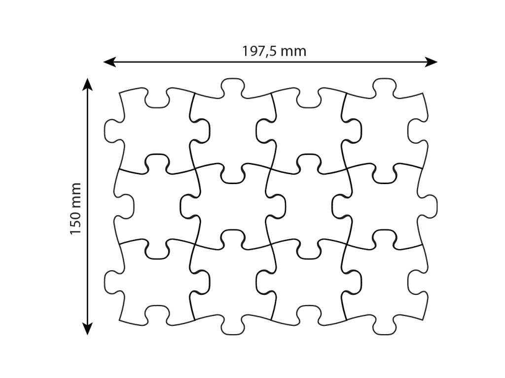- Rozmery: rozmer jedného dielika 5,3 × 6,5 cm
