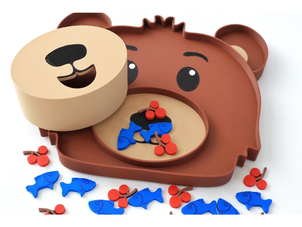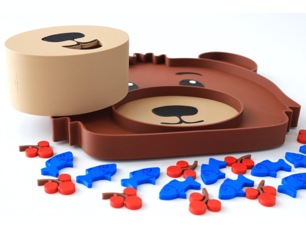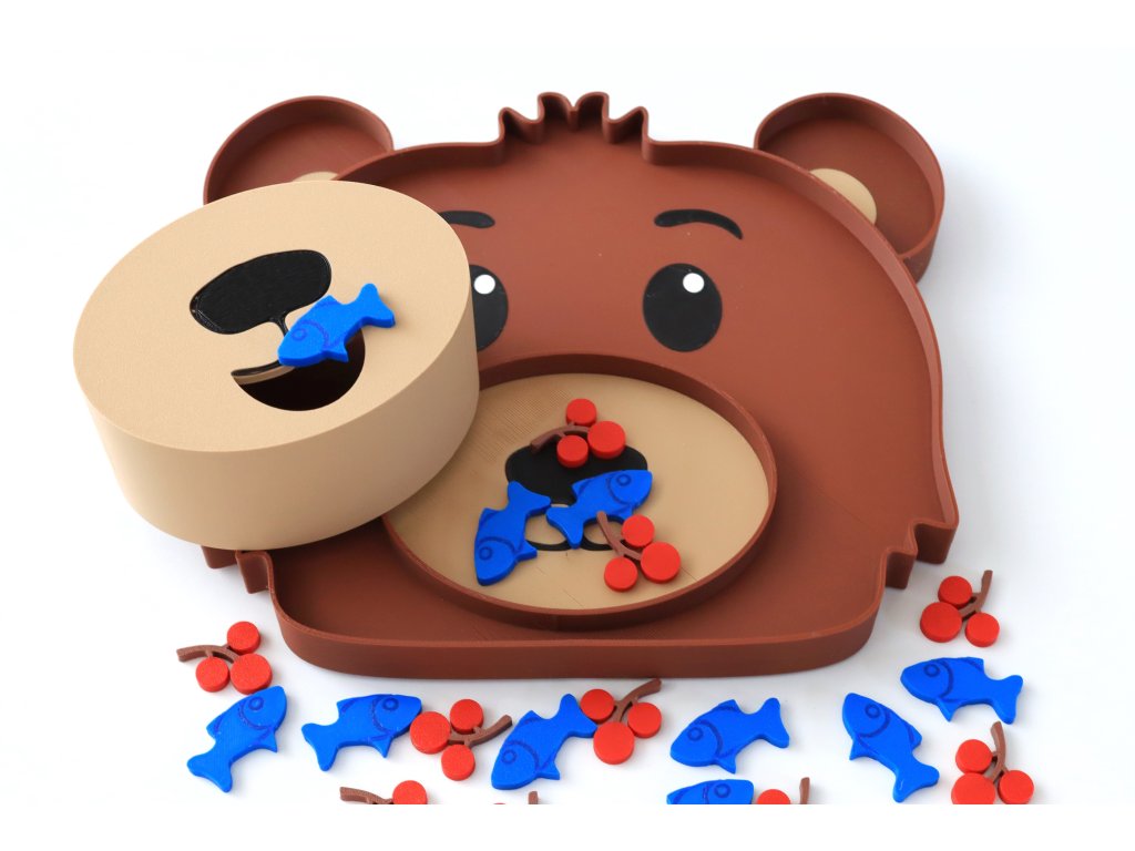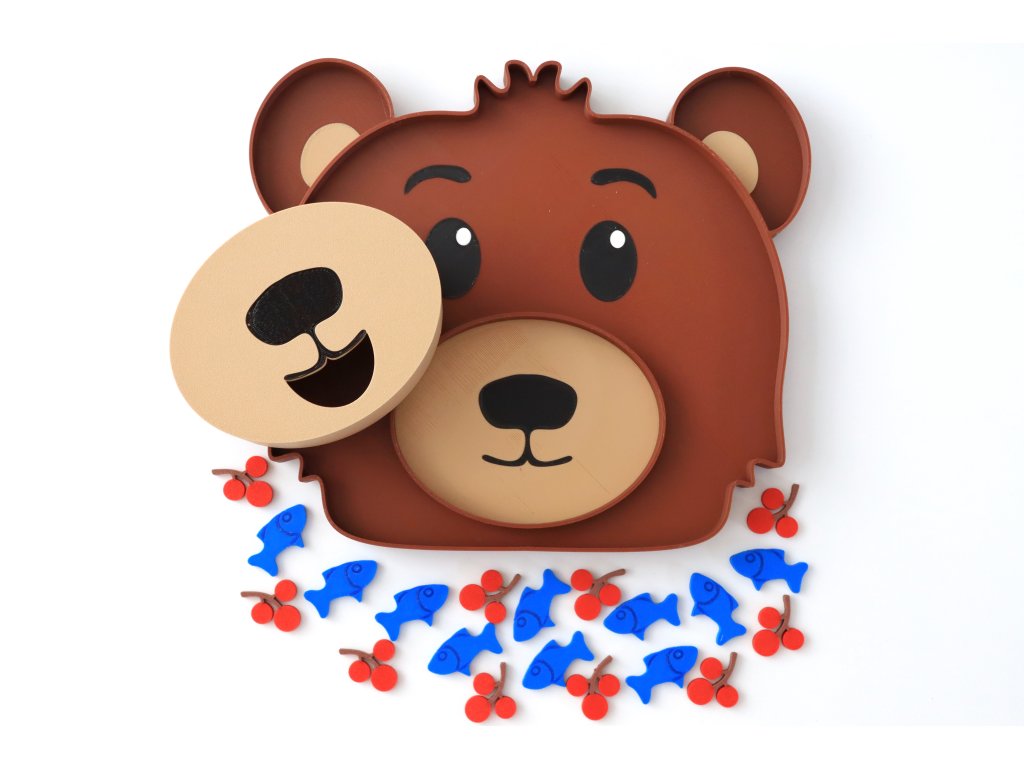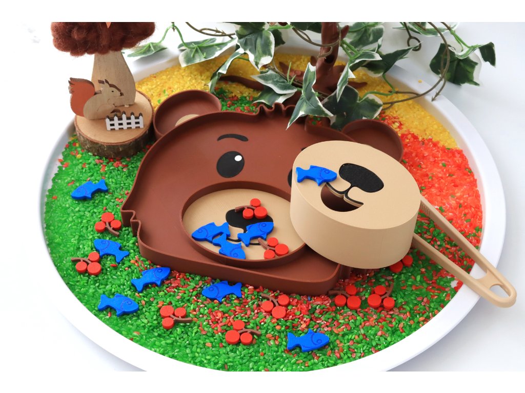 Tento hravý triediaci podnos v tvare roztomilého medvedíka je ideálny na rozvoj jemnej motoriky, koordinácie ruka-oko a logického myslenia. Deti pri kŕmení si precvičia aj triedenie podľa farieb, tvaru a počtu. Po nakŕmení sa nemusíte obávať, že rybičky alebo lesné bobule vypadnú - špeciálne tvarované krmítko ich bezpečne udrží v jeho pusinke.