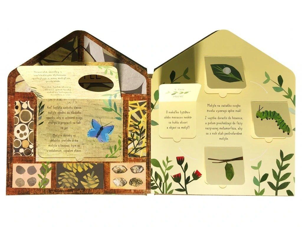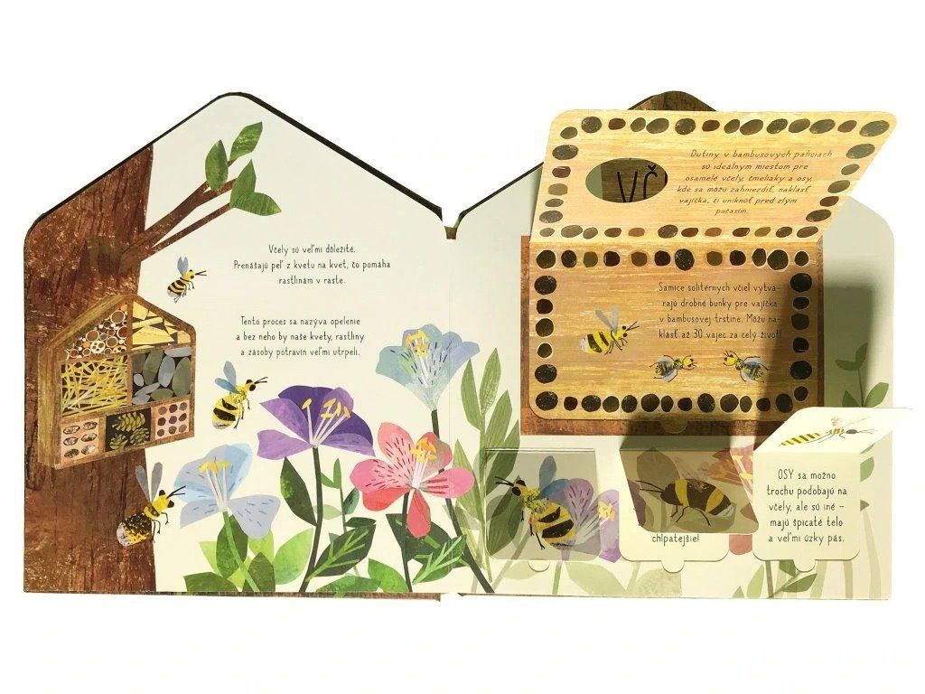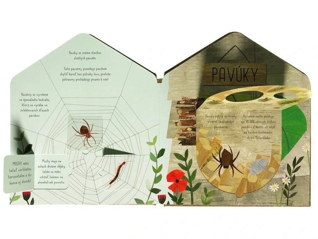 Stačí nadvihnúť okienka a objaviť množstvo zaujímavostí o pavúkoch, motýľoch, roháčoch a ďalších obyvateľoch hmyzieho sveta. Knižka zároveň ukazuje, prečo sa dnes stávajú hmyzie hotely čoraz populárnejšími a akú dôležitú úlohu zohráva hmyz v prírode.