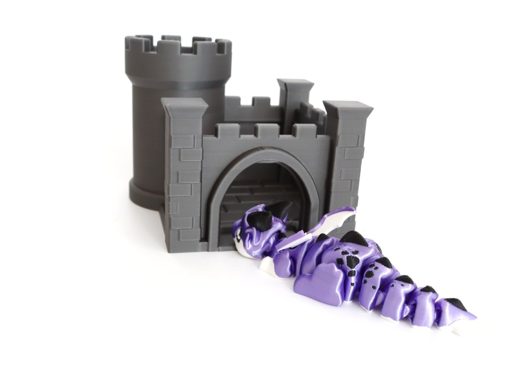 Podstavec hradu má dizajn na ktorom alebo vedľa ktorého môže drak sedieť.