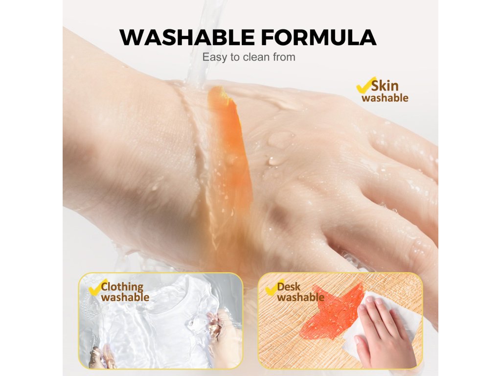 💧 Jednoducho umývateľné – z pokožky aj väčšiny povrchov