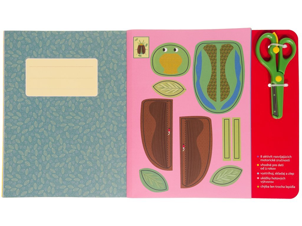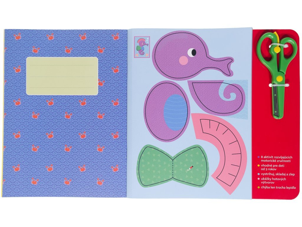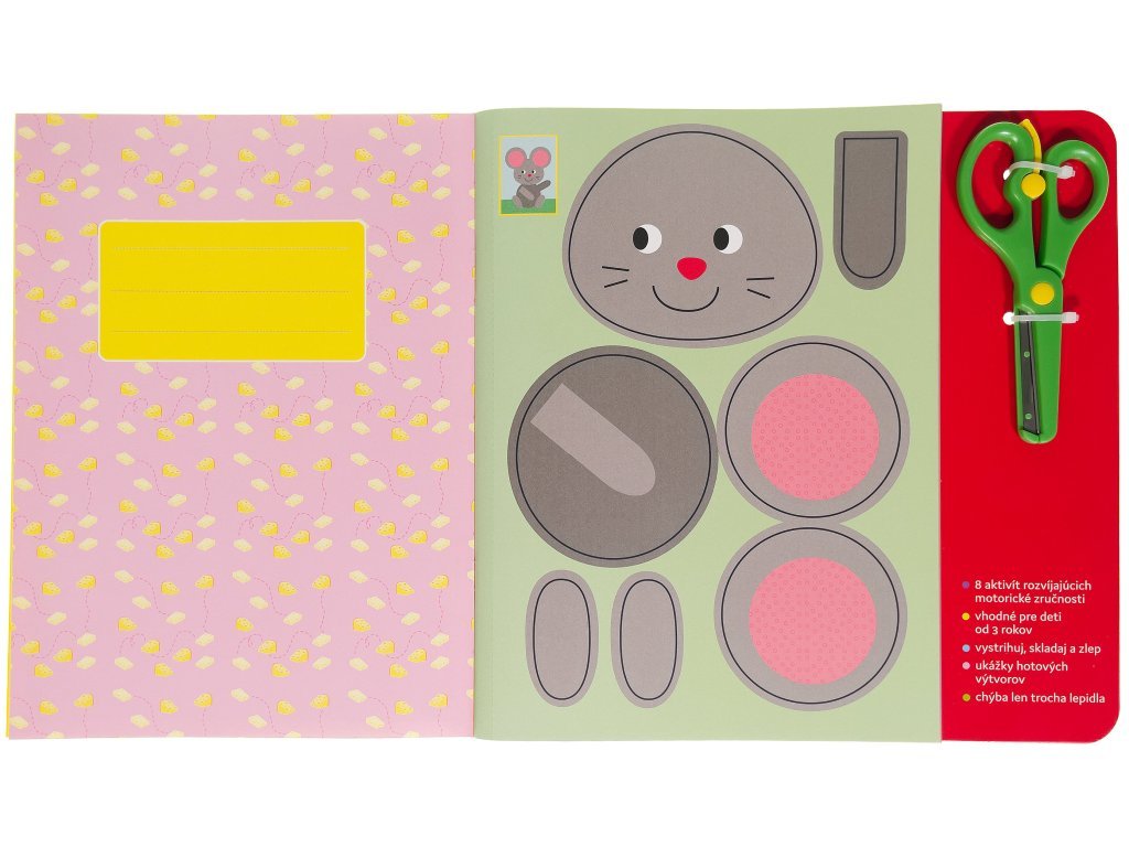 Deti sa prirodzene zoznámia s nožnicami – naučia sa ich správne držať a používať, pričom si precvičia jemnú motoriku, koordináciu a trpezlivosť. Súčasťou zošita sú bezpečné detské nožnice aj všetok potrebný papierový materiál. Stačí pridať lepidlo a tvorivá zábava sa môže začať!