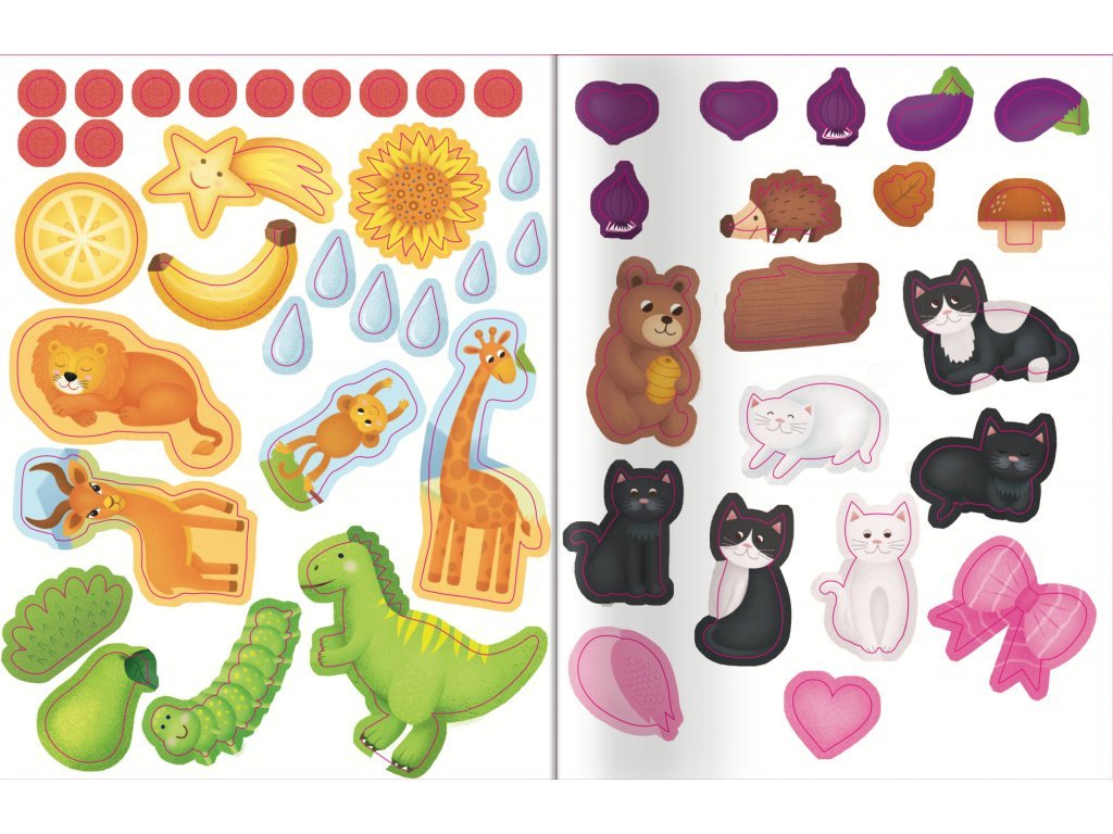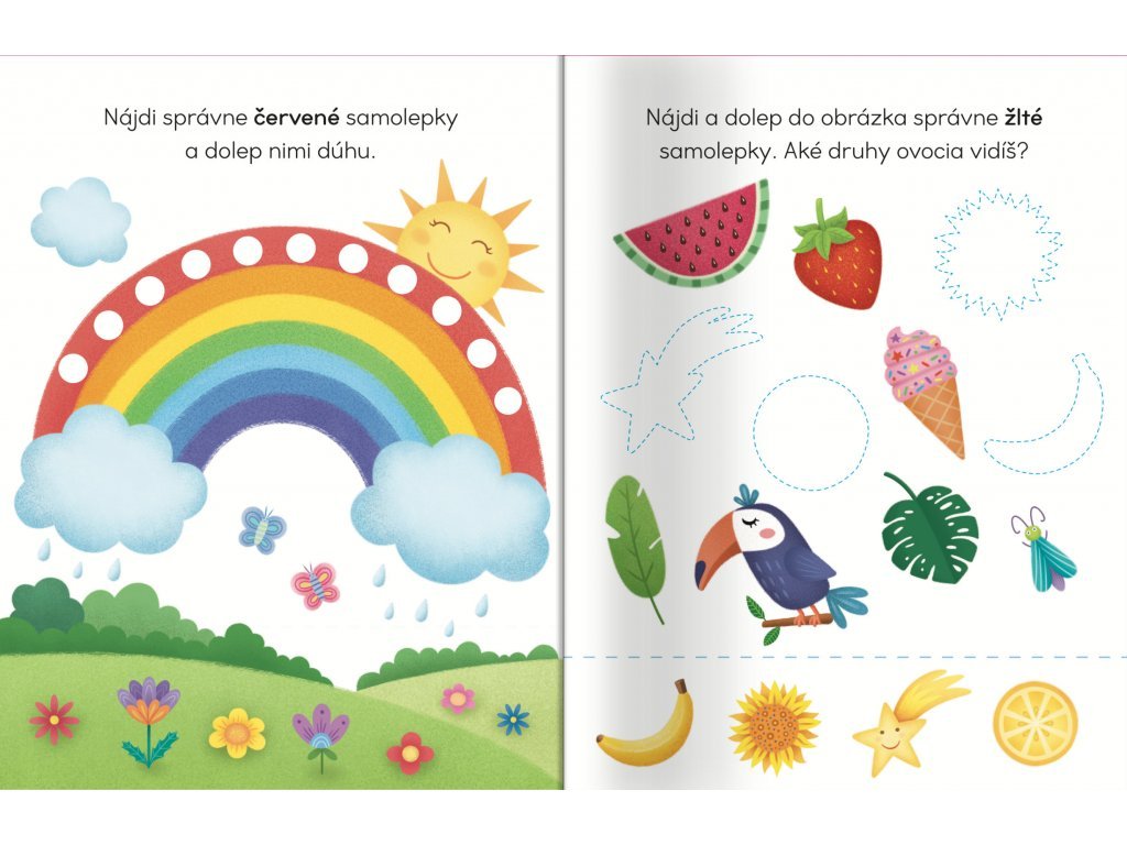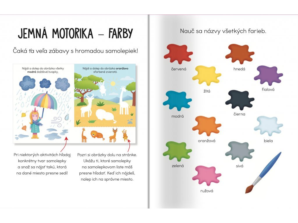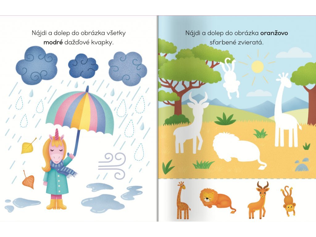 Na každej stránke deti hľadajú správnu samolepku a nalepia ju na vyznačené miesto. Takto si postupne vytvárajú vlastné obrázky, ktoré sú pre nich ešte zaujímavejšie a motivujú ich dokončiť celú úlohu.