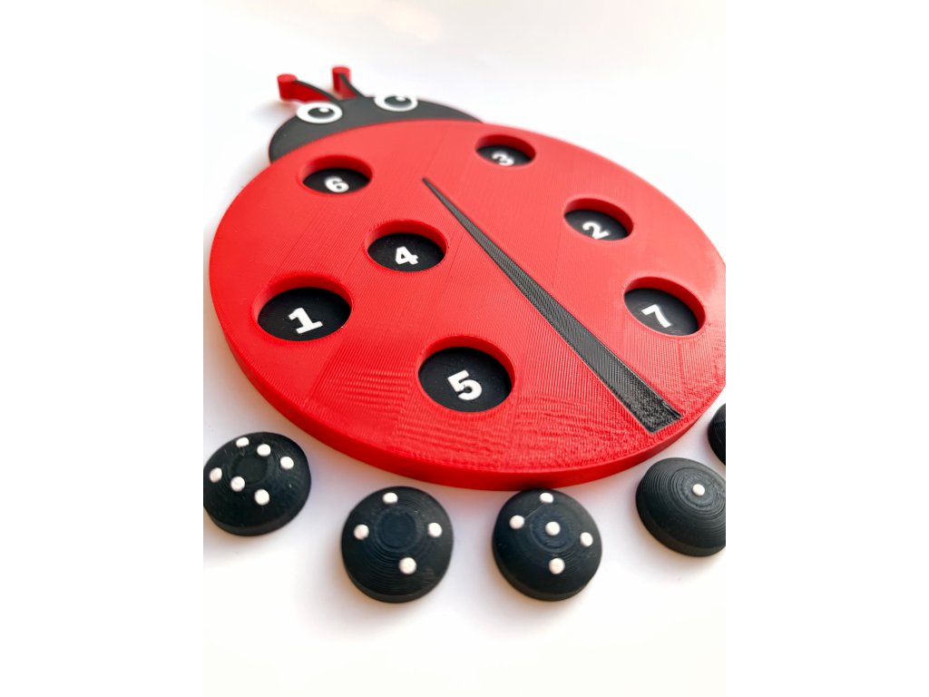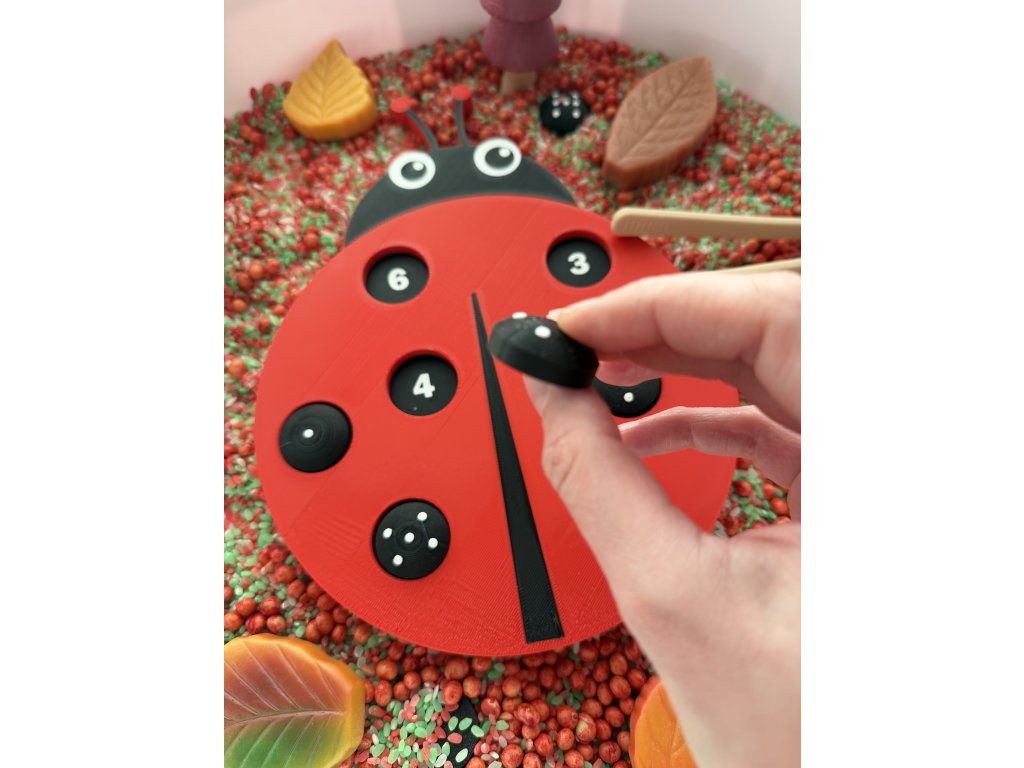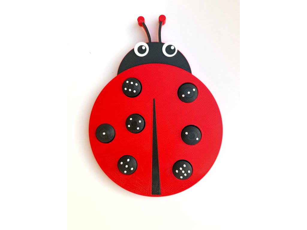 Táto červená lienka prišla o svoje krásne bodky a potrebuje pomoc dieťaťa, aby och dokázala znovu nájsť a zažiariť. Pri hre si deti precvičujú jemnú motoriku, pinzetový úchop, koordináciu oko-ruka a prvé počítanie.