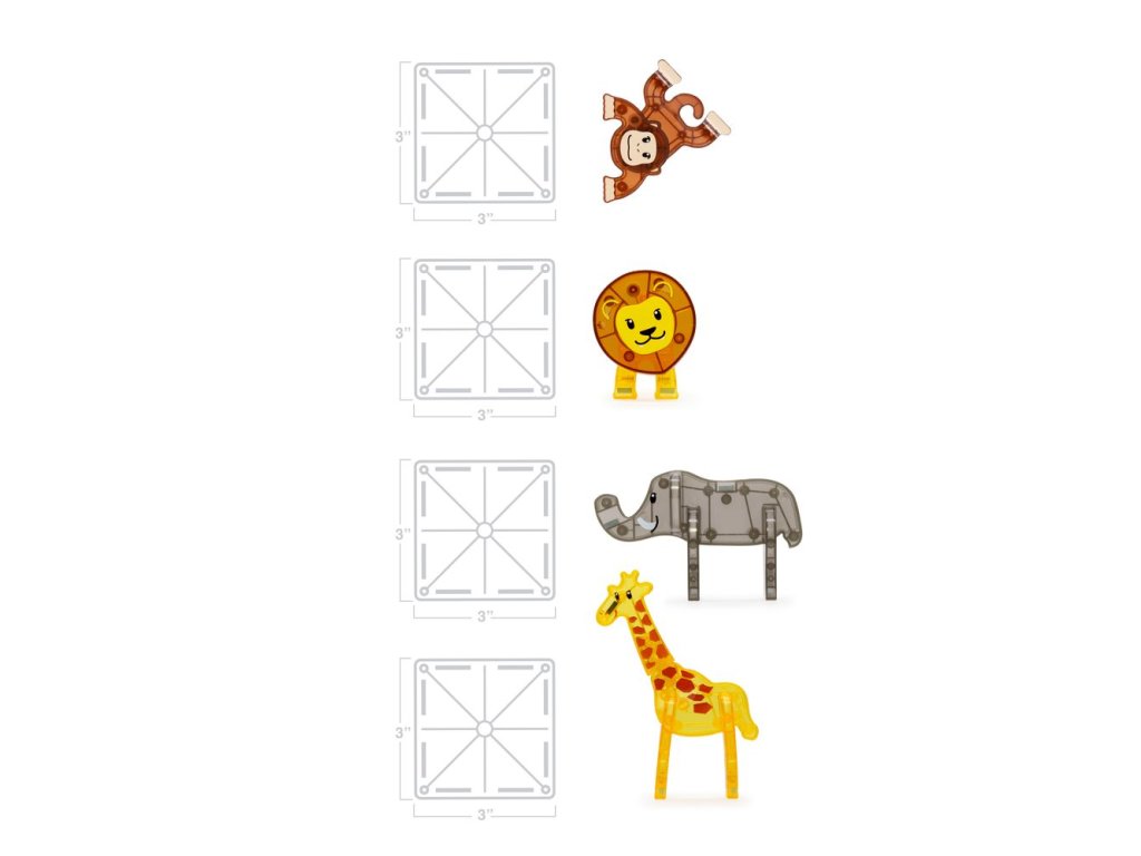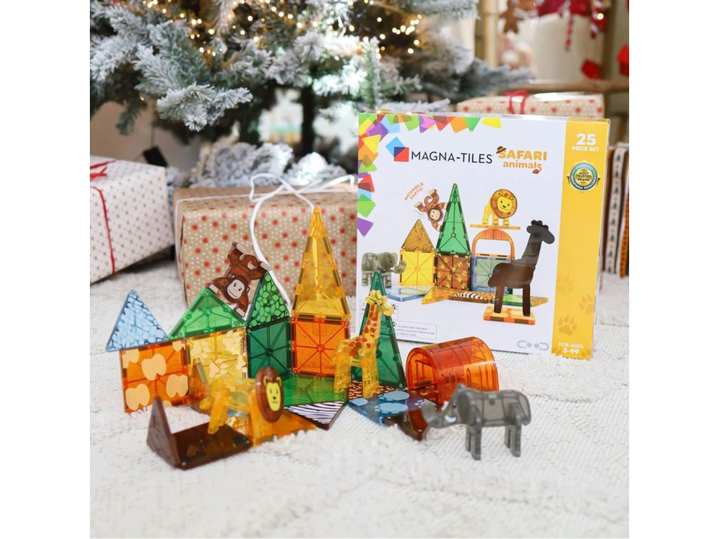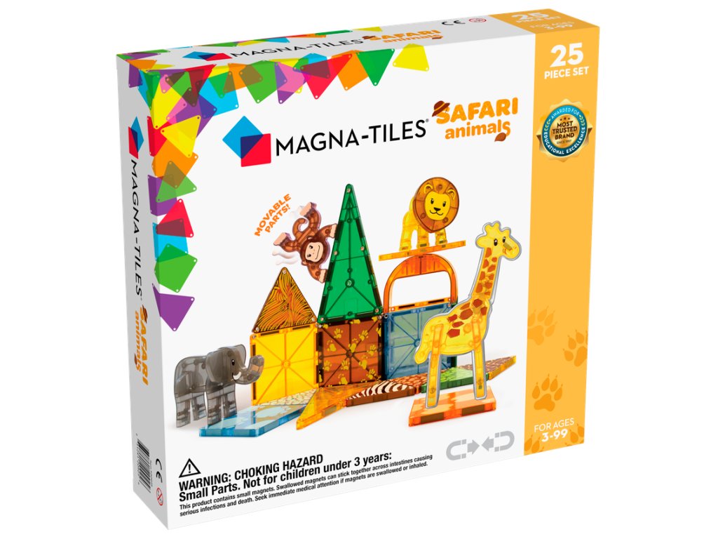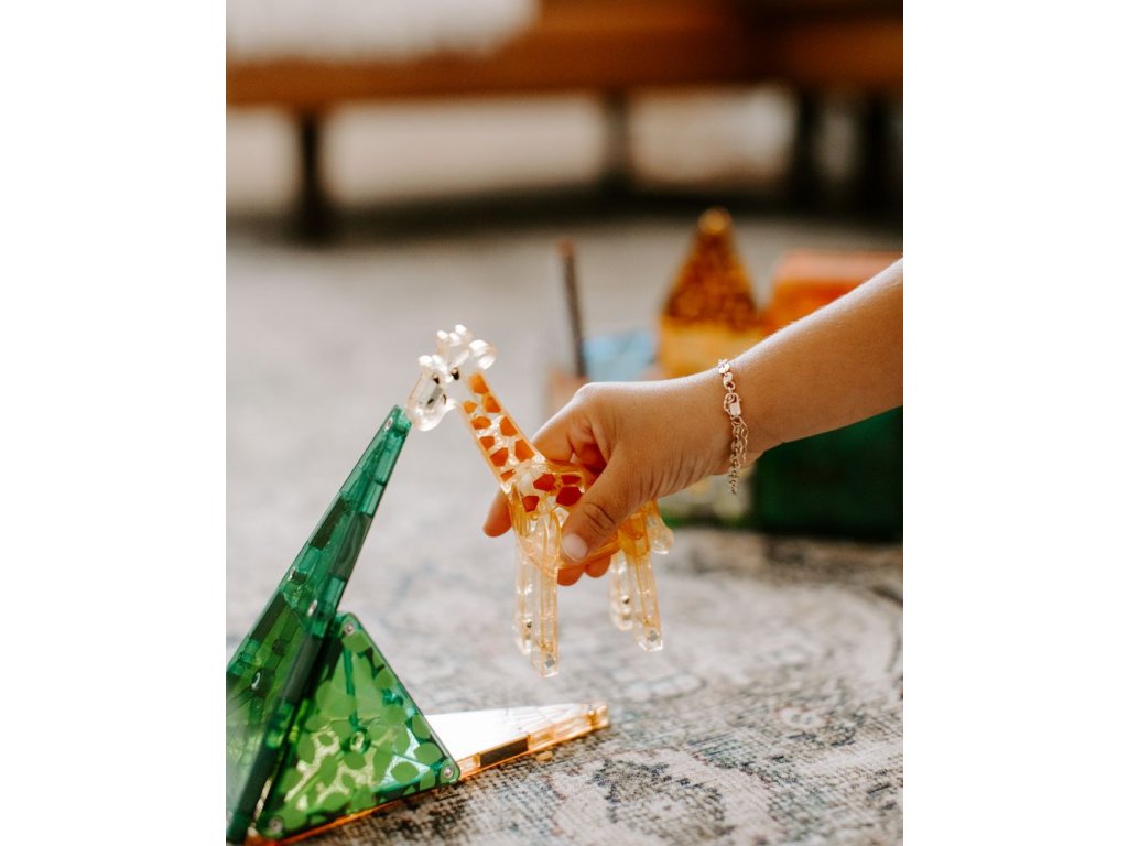 Magnetická stavebnica MAGNA-TILES® Safari Animals prináša deťom hodiny kreatívnej a sústredenej hry bez obrazoviek. Súčasťou sady sú obľúbené safari zvieratká – slon, žirafa, opica a lev, s ktorými sa deti vydajú na dobrodružnú výpravu do africkej savany. Malí objavitelia môžu stavať vlastné príbytky, úkryty a prostredia pre každé zvieratko, čím rozvíjajú fantáziu, jemnú motoriku a logické myslenie.