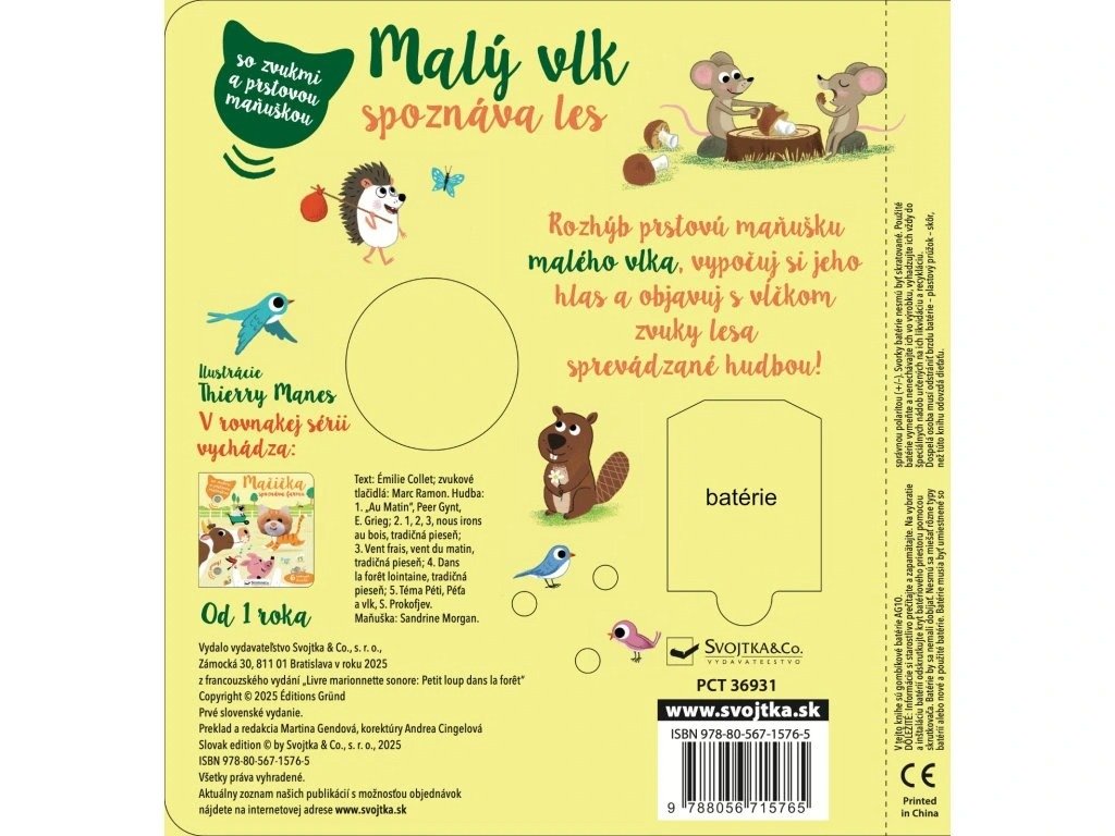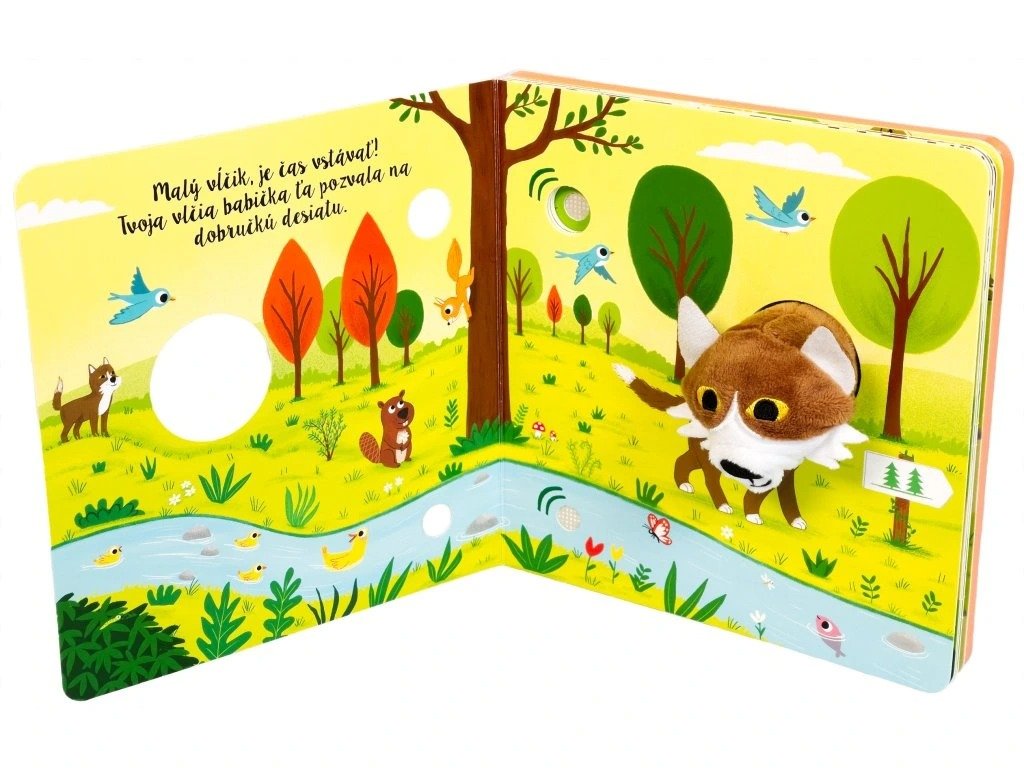 Malý vĺčik sa vydáva za svojou babičkou, ktorá pre neho pripravila chutnú desiatu, no potrebuje zistiť, ktorou cestou sa má vydať. Možno mu poradia veveričky pri dube alebo mu cestu ukážu kukučky. Deti pri prezeraní stránok počujú zvuky lesných obyvateľov a vďaka prstovej maňuške môžu vĺčika oživiť, pohybovať ním a ešte viac vtiahnuť do príbehu. Po stlačení tlačidla sa ozve milé zavytie, ktoré dopĺňa celý čarovný zážitok z tohto interaktívneho príbehu.