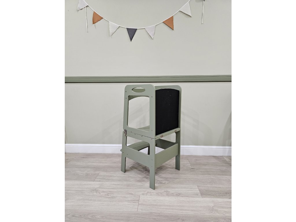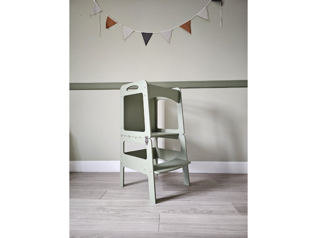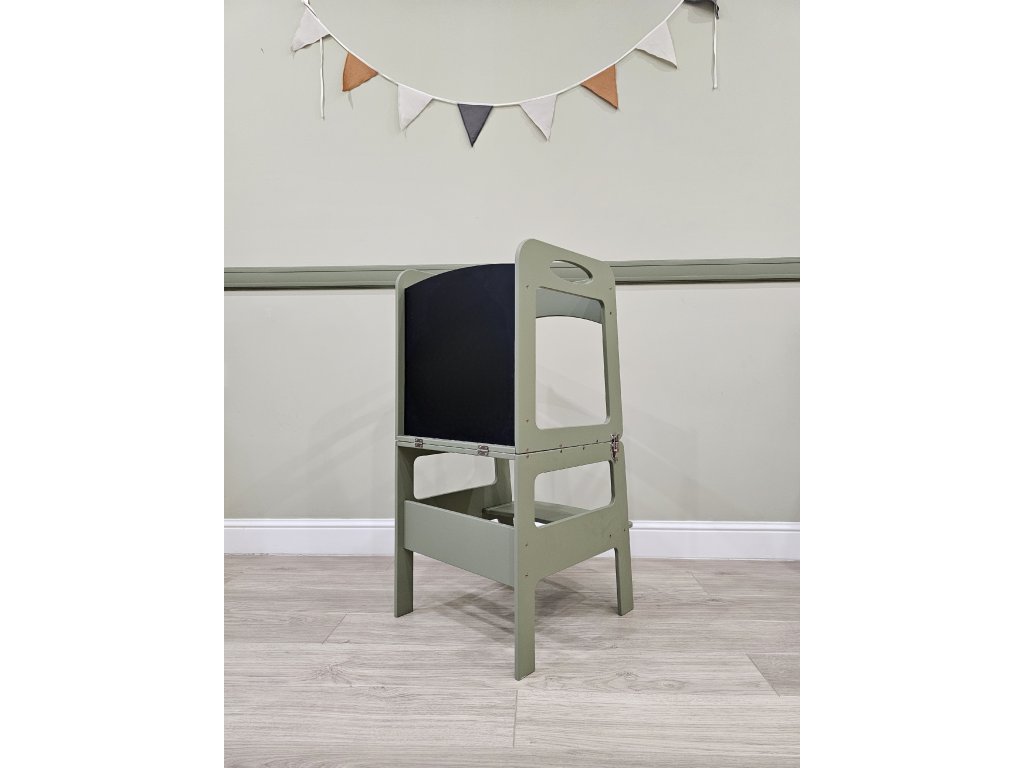 Multifunkčná montessori učiaca veža 3v1 s tabuľou je navrhnutá tak, aby deťom ponúkla všestranný a bezpečný nástroj, ktorý sa dokonale prispôsobí ich vývoju.Podľa princípov montessori pedagogiky sa táto veža ľahko premení na stôl a stoličku, čo umožňuje vášmu dieťaťu samostatne objavovať, hrať sa a učiť sa.Veža je vyrobená z vysoko kvalitnej brezovej preglejky. Obrovskou výhodou preglejky je, že na rozdiel od dreva je povrch dosiek pevný a odolný voči oderom a škrabancom (len tak ľahko sa nepoškriabe).