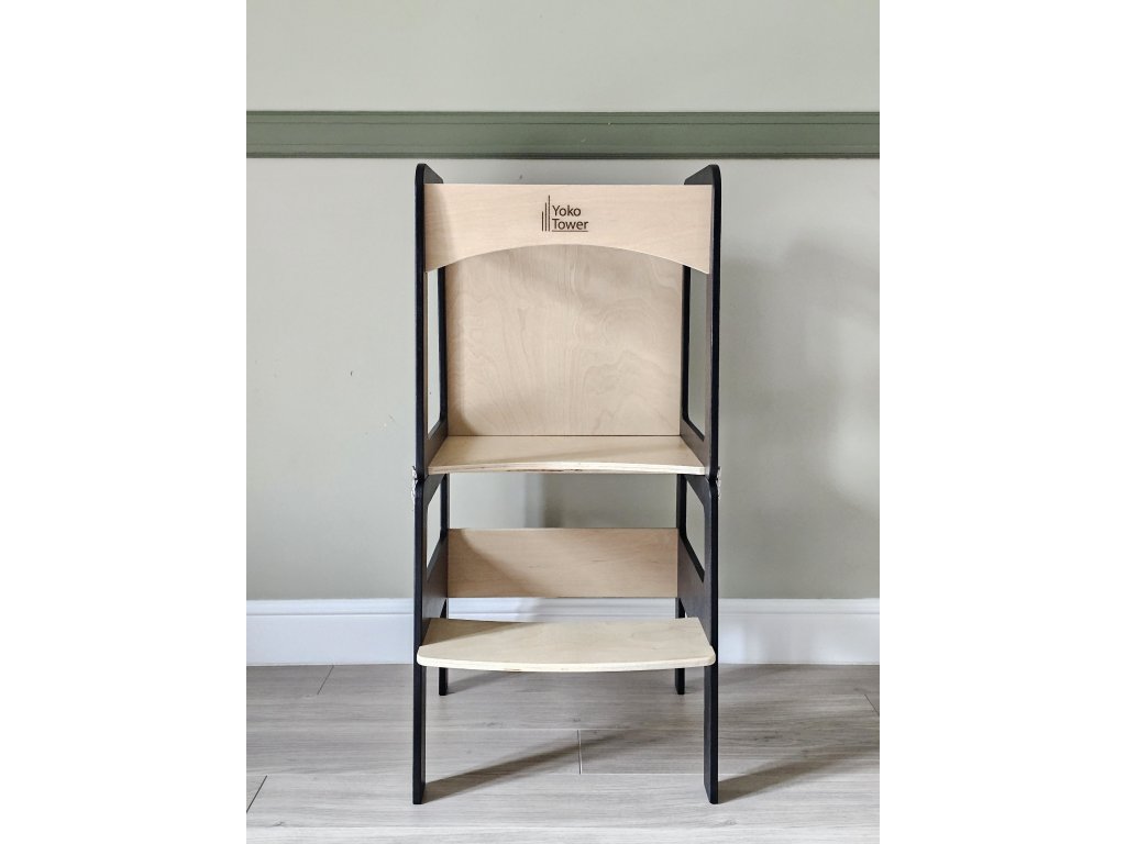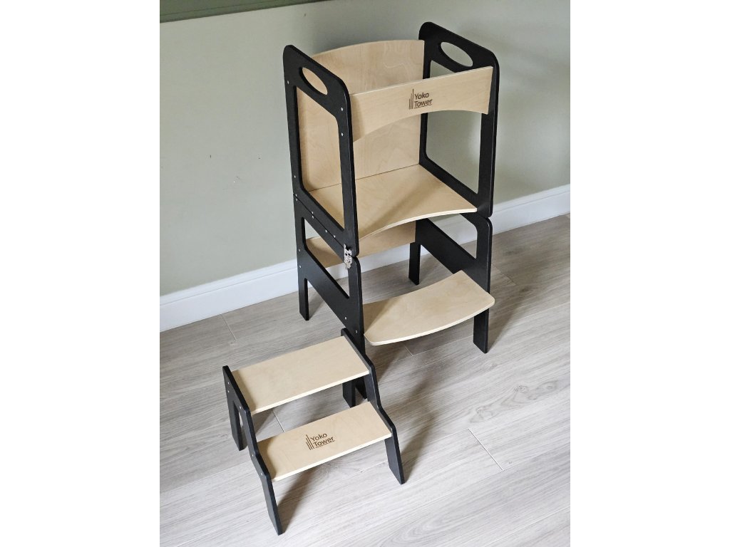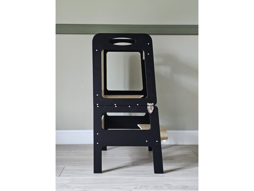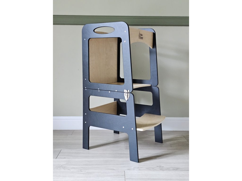 Montessori učiaca veža 3v1 s tabuľou čierna/lakovaná