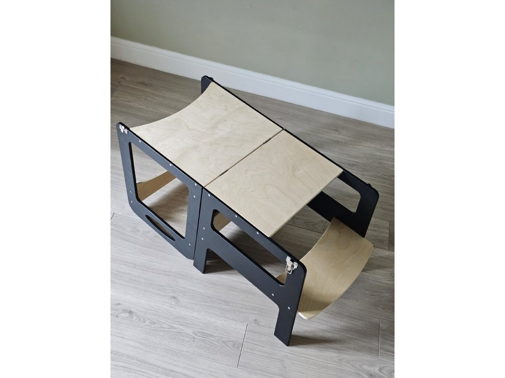 - Funkčnosť: Premeniteľná na stôl a stoličku s integrovanou tabuľou