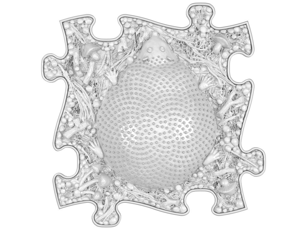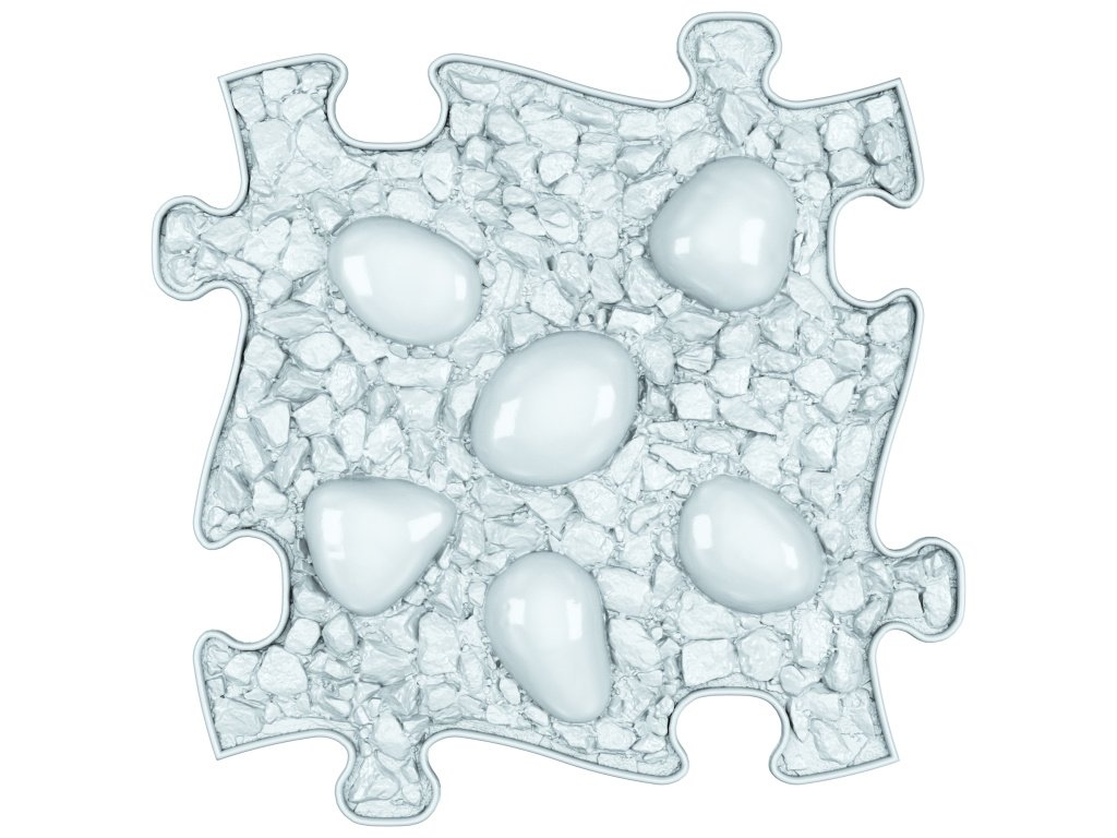 Spojenie pastelovo modrej, trblietavo striebornej, sivej, bielej a ľadovo priezračnej farby dokonale vystihuje čaro zimnej krajiny. Set obsahuje obľúbené typy ortopedických podložiek – nájdete medzi nimi zasnežené biele vetvičky aj roztomilého ježka, ktorého prvý sneh zastihol ešte pred zimným spánkom. Nechýba ani tráva, ktorá vďaka priesvitnému vzhľadu pôsobí, akoby ju pokrývala ranná inovať, či sivé korene pripomínajúce rozprávkové vzory nakreslené mrazom na okenných tabuľkách.