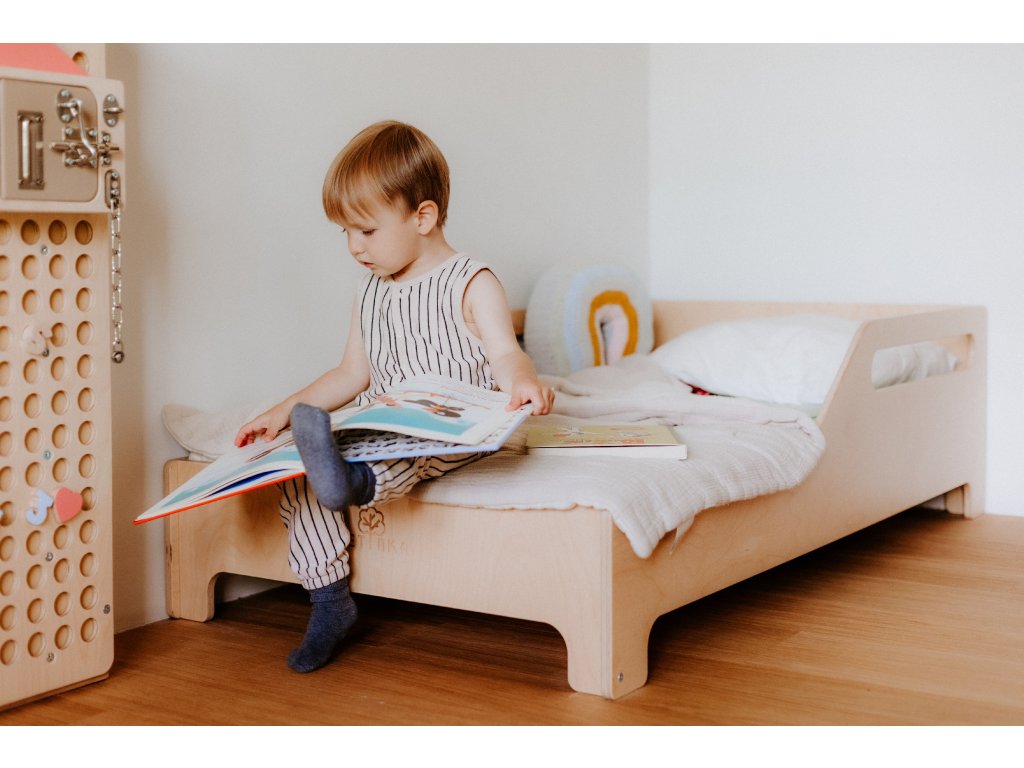 Montessori detská postieľka Hugo je navrhnutá podľa princípov Márie Montessori, ktoré podporujú samostatnosť, prirodzený pohyb a zdravý vývoj dieťaťa. Vďaka nízkej konštrukcii dokáže dieťa pohodlne samo vyliezať aj zliezať, čím sa posilňuje jeho sebavedomie a motorika. Postieľka je zároveň vysoko bezpečná – vyvýšené bočné okraje siahajú do polovice postele a účinne zabraňujú pádu počas spánku. Jej nadčasový dizajn v prírodnom prevedení krásne zapadne do každej detskej izby a harmonicky ladí s moderným aj Montessori interiérom.