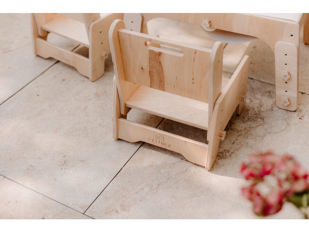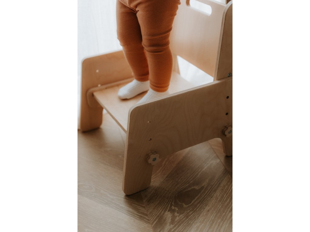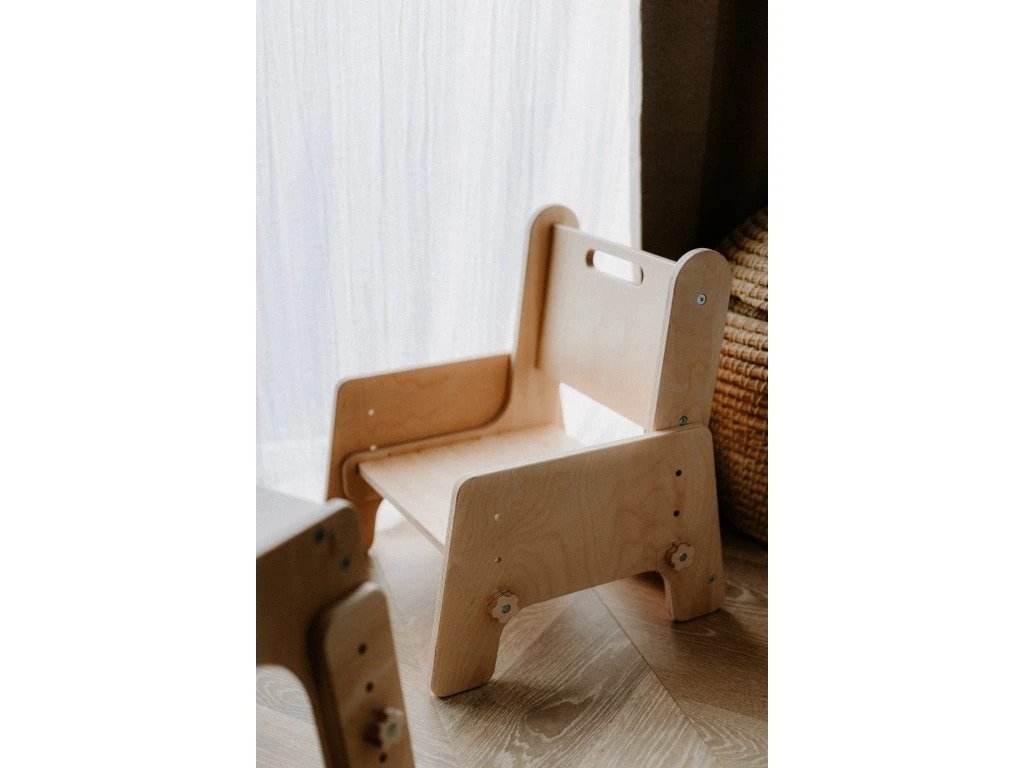 Tento rastúci detský nábytok v Montessori štýle podporuje samostatnosť, správne držanie tela a prirodzený pohyb dieťaťa. Ideálna voľba pre rodičov, ktorí hľadajú kvalitnú drevenú stoličku pre deti, s dlhou životnosťou a nadčasovým dizajnom.