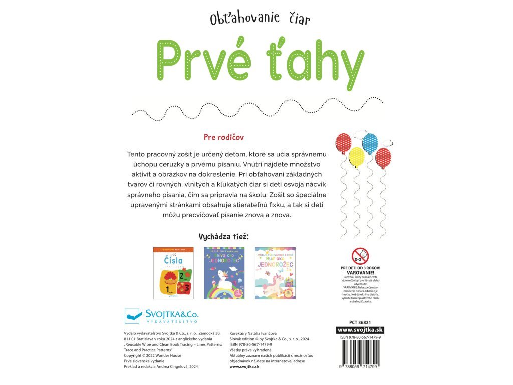 Praacovný zošit obsahuje množstvo aktivít, ako je obťahovanie čiar, jednoduchých tvarov či obrázkov, ktoré deti motivujú k opakovaniu a precvičovaniu. Vďaka špeciálnym stránkam a praktickej stierateľnej fixke môžu malí školáci písať znova a znova – bez obmedzení a s radosťou. Učenie sa tak mení na hravú a nekonečne opakovateľnú aktivitu.