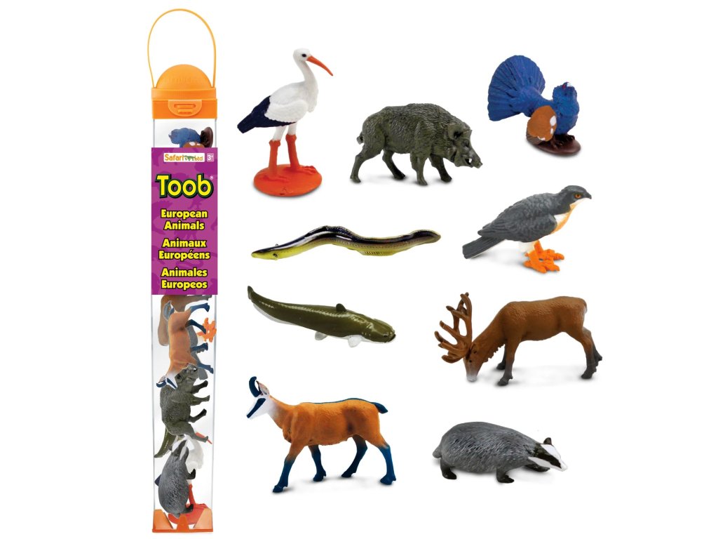 Sada obsahuje 9 figúrok: bocian biely, diviak lesný, hlucháň hôrny (tetrov hlucháň), úhor európsky, jastrab krahulec (eurázijský), sumec veľký (wels), jeleň lesný (jeleň červený), kamzík vrchovský a jazvec lesný.