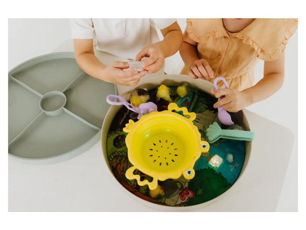 Ply Tray od Jellystone Designs je praktická 2v1 senzorická tácka, ktorá ponúka nekonečné možnosti tvorenia. Vytvárajte vlastné mini svety priamo na pevnom základe z bambusového vlákna a melamínu alebo na mäkkom silikónovom vrchnáku. Ten je zdobený jemnými reliéfmi s motívmi prírody, vesmíru a záhradných tvorov – ideálne pre hru, objavovanie aj relaxáciu.