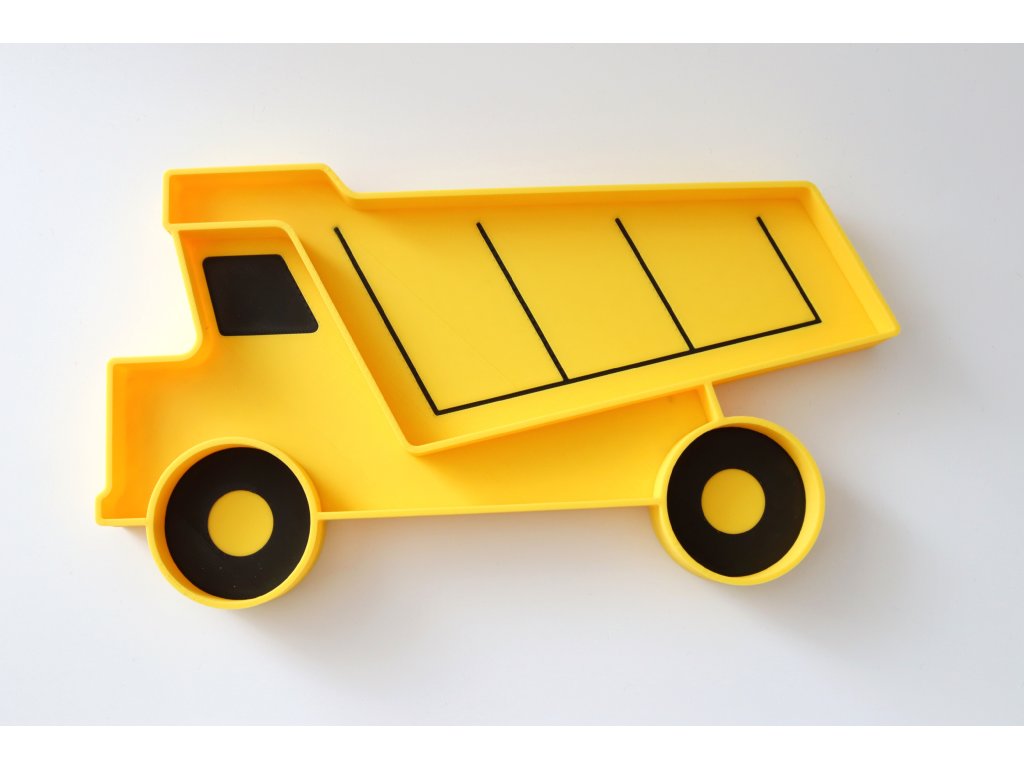 Deti môžu presýpať, nakladať, voziť a manipulovať s rôznorodými materiálmi, ako praví robotníci na stavenisku. Podnos v tvare stavebného vozidla - nakladača vytvára lákavý priestor na hru, ktorá podporuje zmyslové vnímanie, koncentáciu a koordináciu oko-ruka.