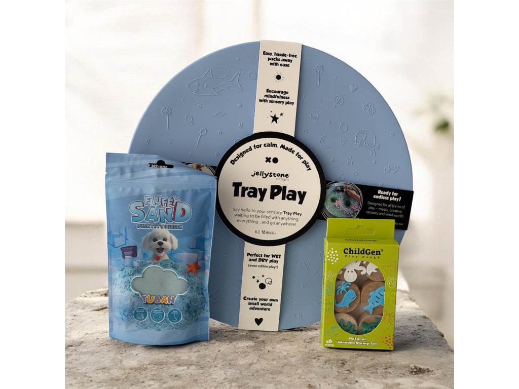 SET : Senzorická tácka + fluffy piesok + drevené pečiatky