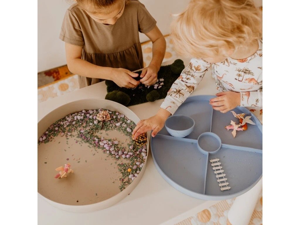 Ply Tray od Jellystone Designs je praktická 2v1 senzorická tácka, ktorá ponúka nekonečné možnosti tvorenia. Vytvárajte vlastné mini svety priamo na pevnom základe z bambusového vlákna a melamínu alebo na mäkkom silikónovom vrchnáku. Ten je zdobený jemnými reliéfmi s motívmi prírody, vesmíru a záhradných tvorov – ideálne pre hru, objavovanie aj relaxáciu.