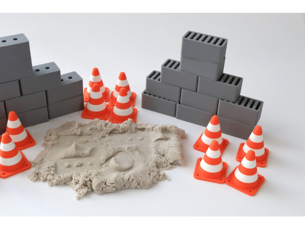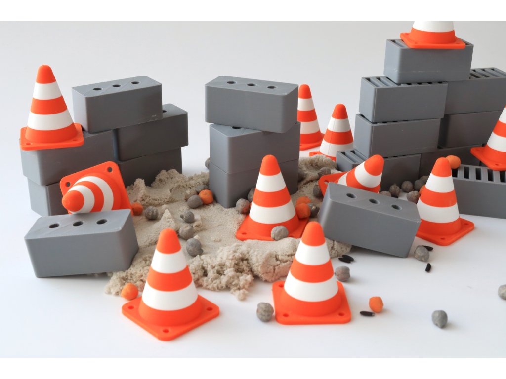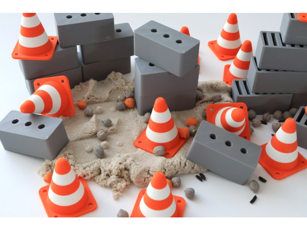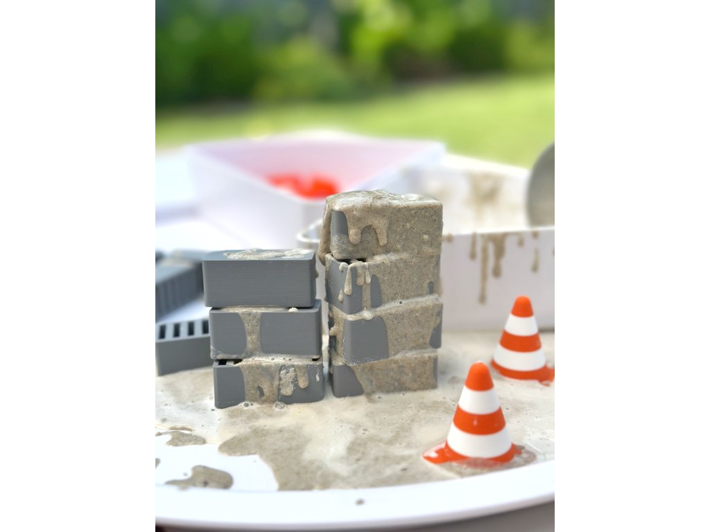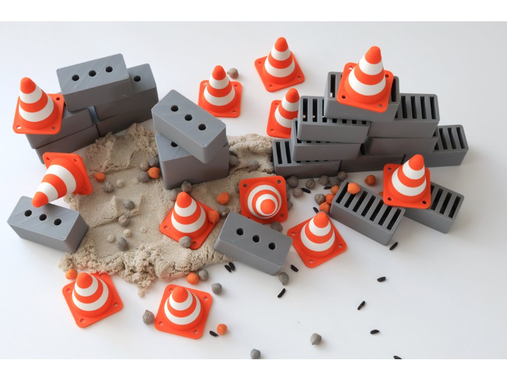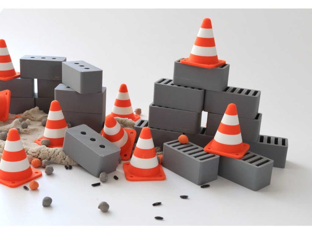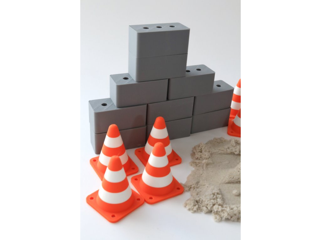 Mini 3D "betónové" tehličky a kužele sú navrhnuté tak, aby zapájali zmysly a rozvíjalu jemnú motoriku, vnímanie detailov aj fantáziu detí. Ideálne na hru s otvoreným koncom a malým svetom - tieto bloky a kužele sú skvelé na nápaditú hru, pri ktorej sa dá vytvoriť všetko od staveniska až po scény s malým svetom.