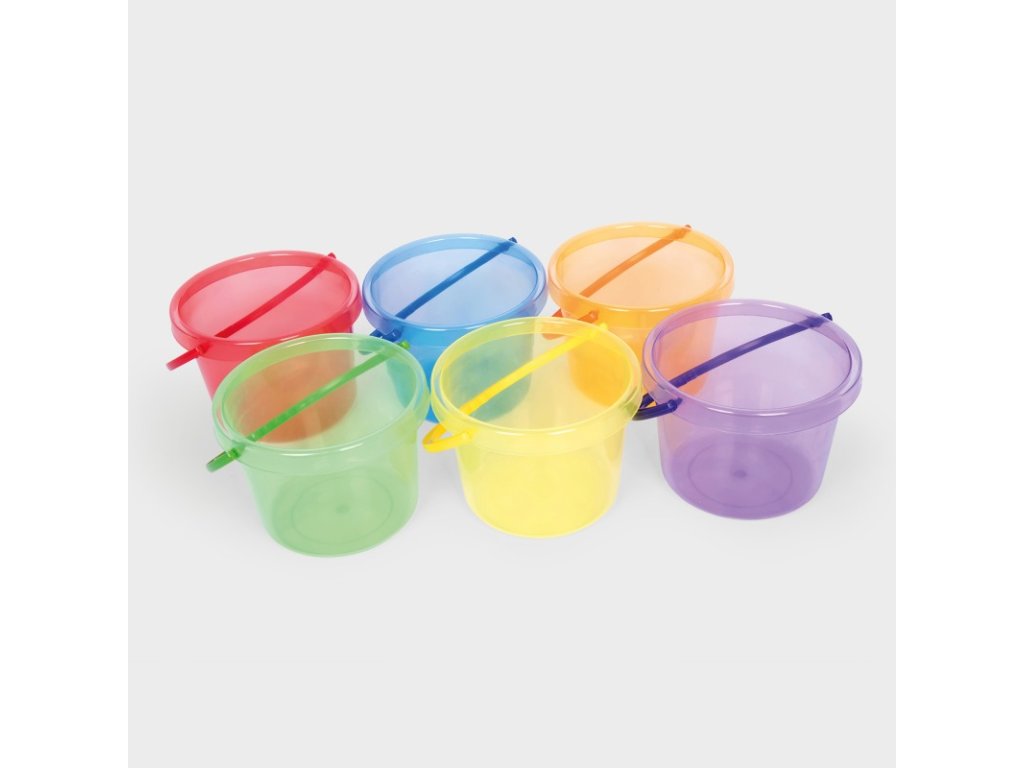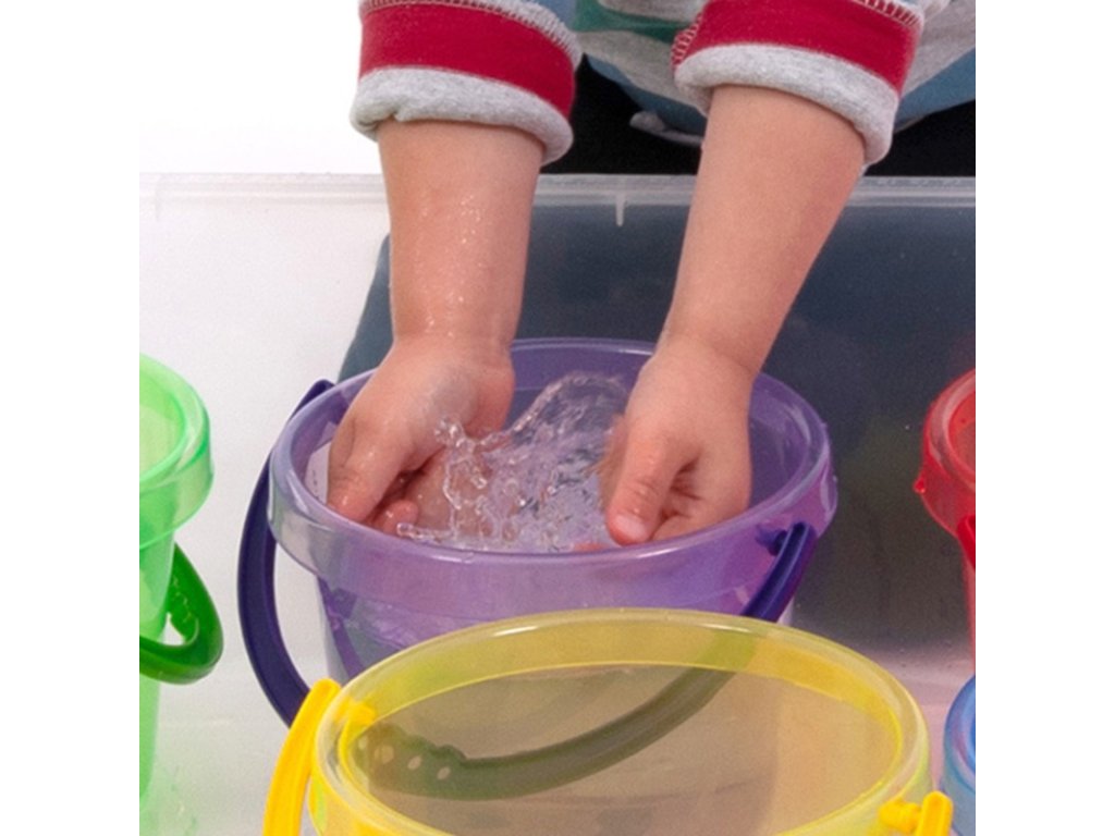 Priehľadné farebné vedierko je všestranným pomocníkom pri detskej hre doma aj vonku. Je ideálny na hru s pieskom a vodou, no jeho využitie je oveľa širšie. Deti môžu miešať farby a objavovať, čo vznikne ich kombináciou, zbierať prírodniny počas prechádzky, triediť rôzne predmety podľa farby či veľkosti alebo vykonávať jednoduché experimenty s vodou a rôznymi materiálmi.