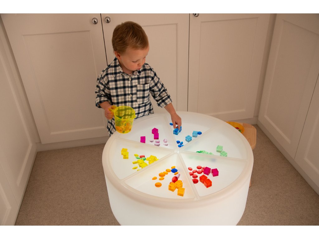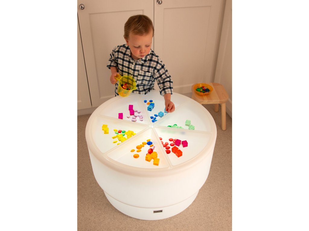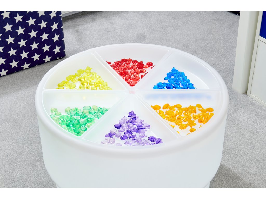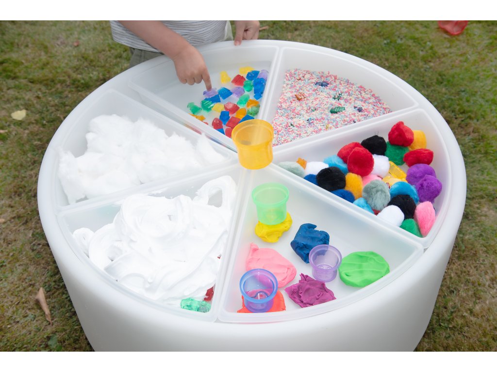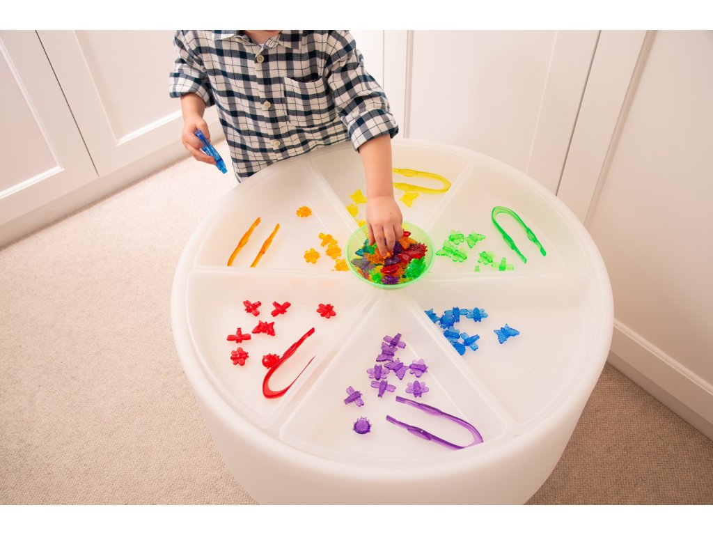 Všestranné využitie zahŕňa triedenie a usporiadanie, messy play (špinavú hru), prenášanie a vylievanie, vytváranie miniatúrnych scén malého sveta a skúmanie farieb alebo zmyslov. Zásobníky sa ľahko čistia a ľahko sa skladujú- úhľadne ukladajú na seba.