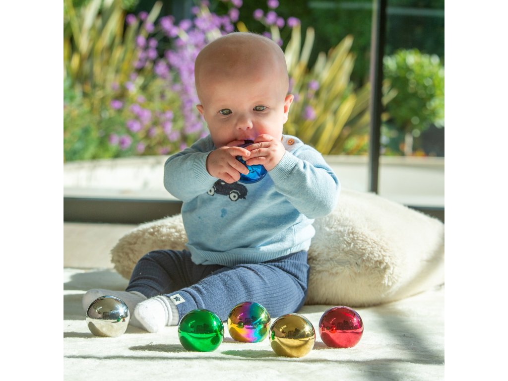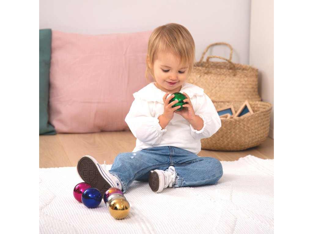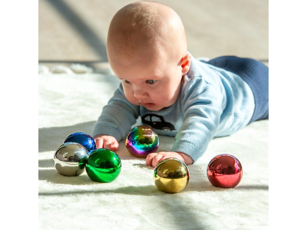 - 6× senzorická loptička z nehrdzavejúcej ocele v rôznych farbách ( modrá, zelená, zlatá, ružová, strieborná a viacfarebný efekt)