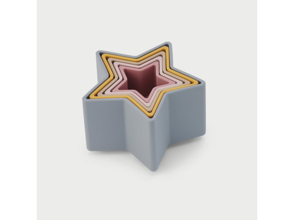 Jednoduché na uchopenie, stláčanie, skladanie aj vkladanie – ideálne pre malé detské rúčky. Dno každého pohárika obsahuje 1 až 5 otvorov – výborné na učenie počítania alebo nalievanie vody. Vyvýšený vzor hviezdy podporuje hmatové skúmanie. Poháriky je možné použiť aj ako razítka do farieb alebo plastelíny – vytvárajú krásne hviezdičkové otlačky.