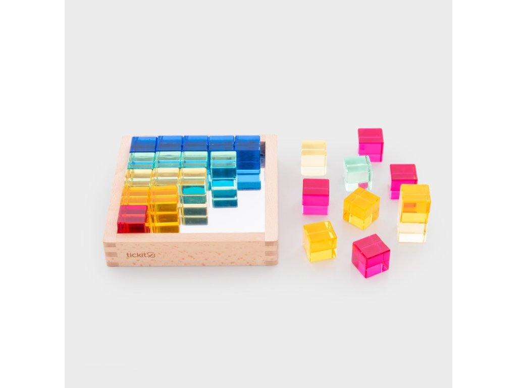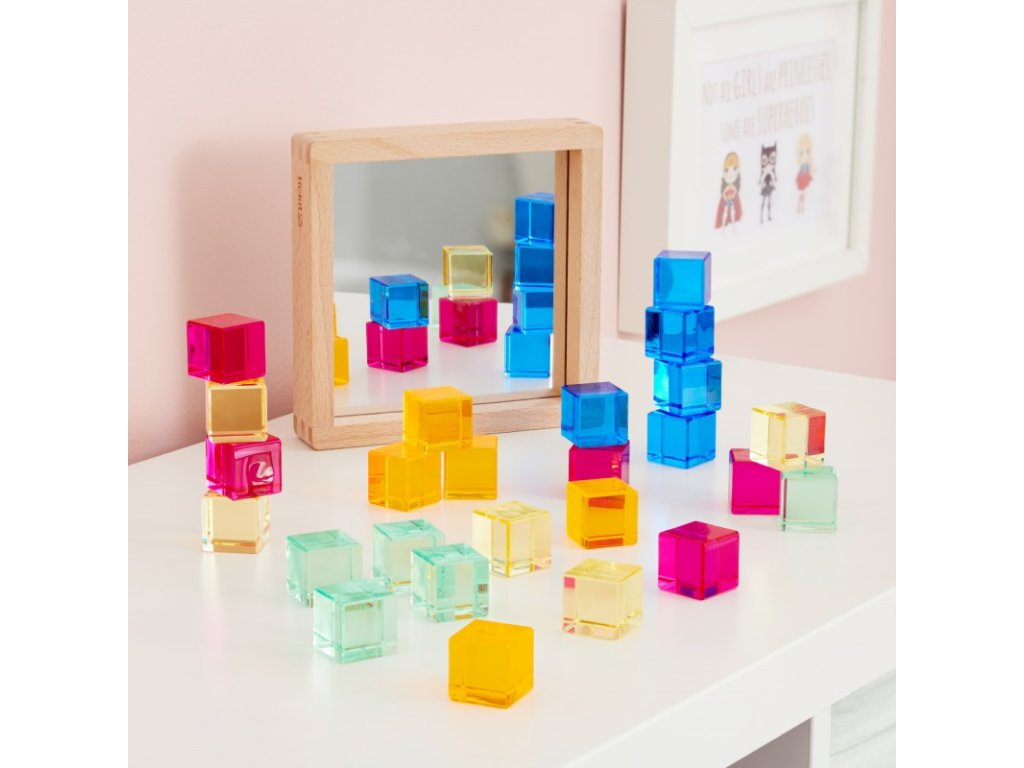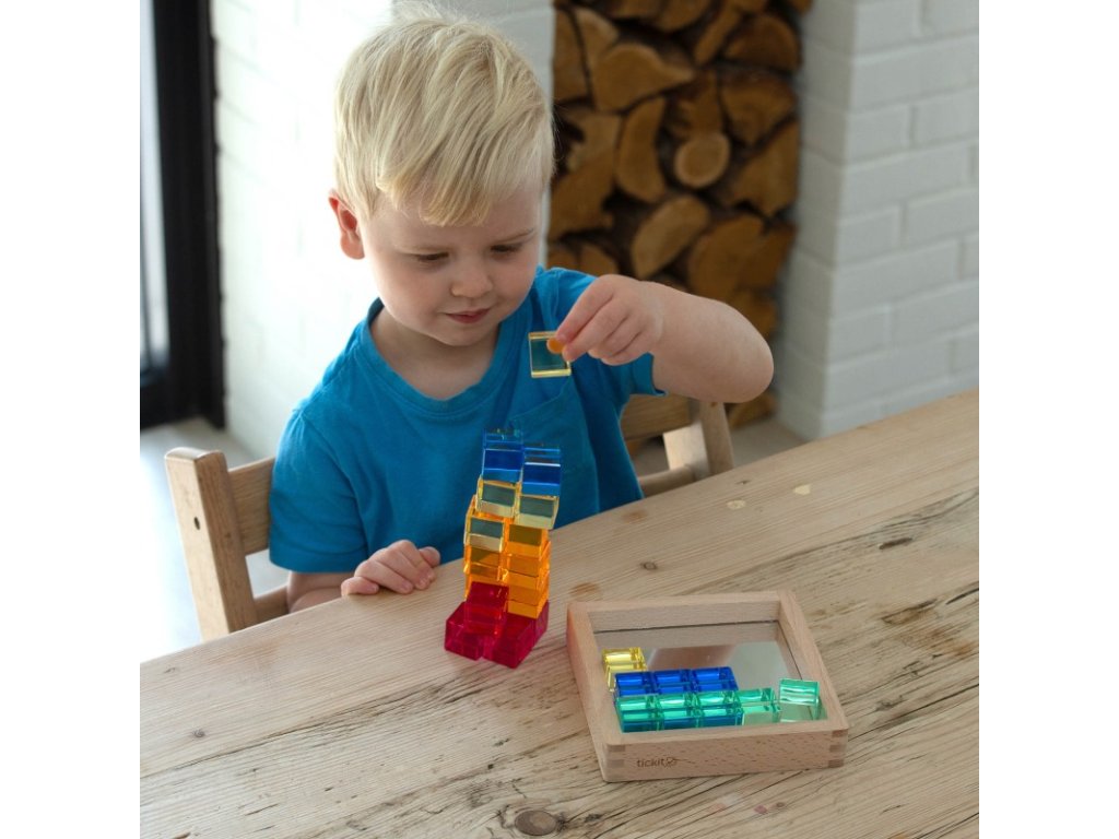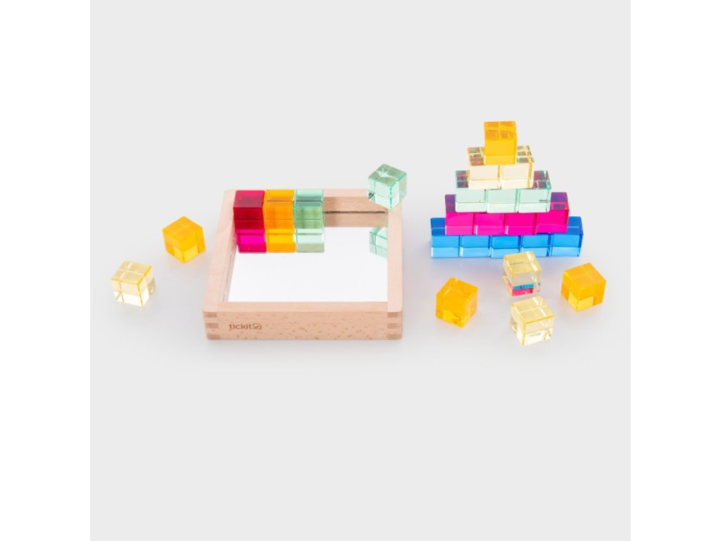 Ideálne na aktivity ako triedenie a miešanie farieb, tvorbu vzorov, počítanie a učenie sa o odrazoch. Kocky sa dajú použiť aj na stavanie vežičiek, vytváranie obrazcov a obrázkov alebo ako doplnky do tematických scén pri imaginatívnej hre, čo prirodzene podporuje opisný jazyk.