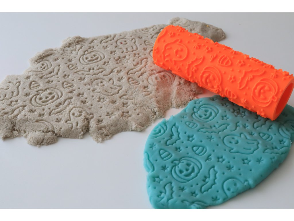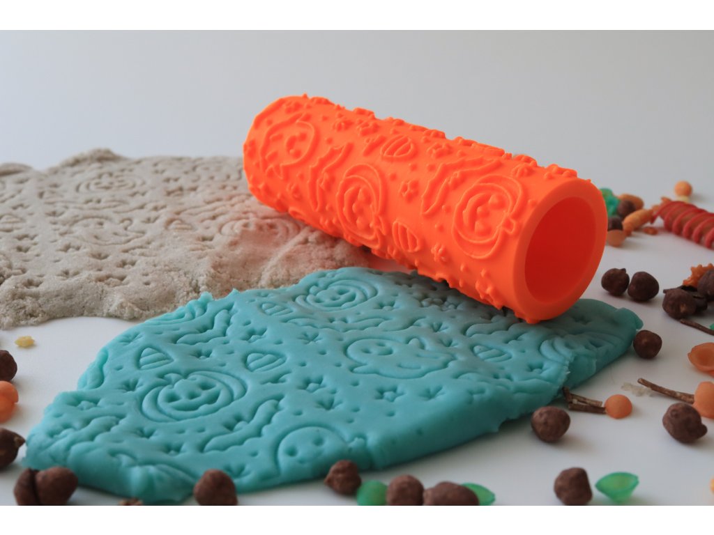 Každý valček ma jedinečnú textúru, ktorá dodá plastelíne, piesku či hline originálny vzor.