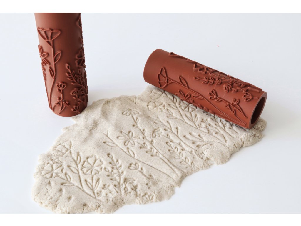 Každý valček ma jedinečnú textúru, ktorá dodá plastelíne, piesku či hline originálny vzor.