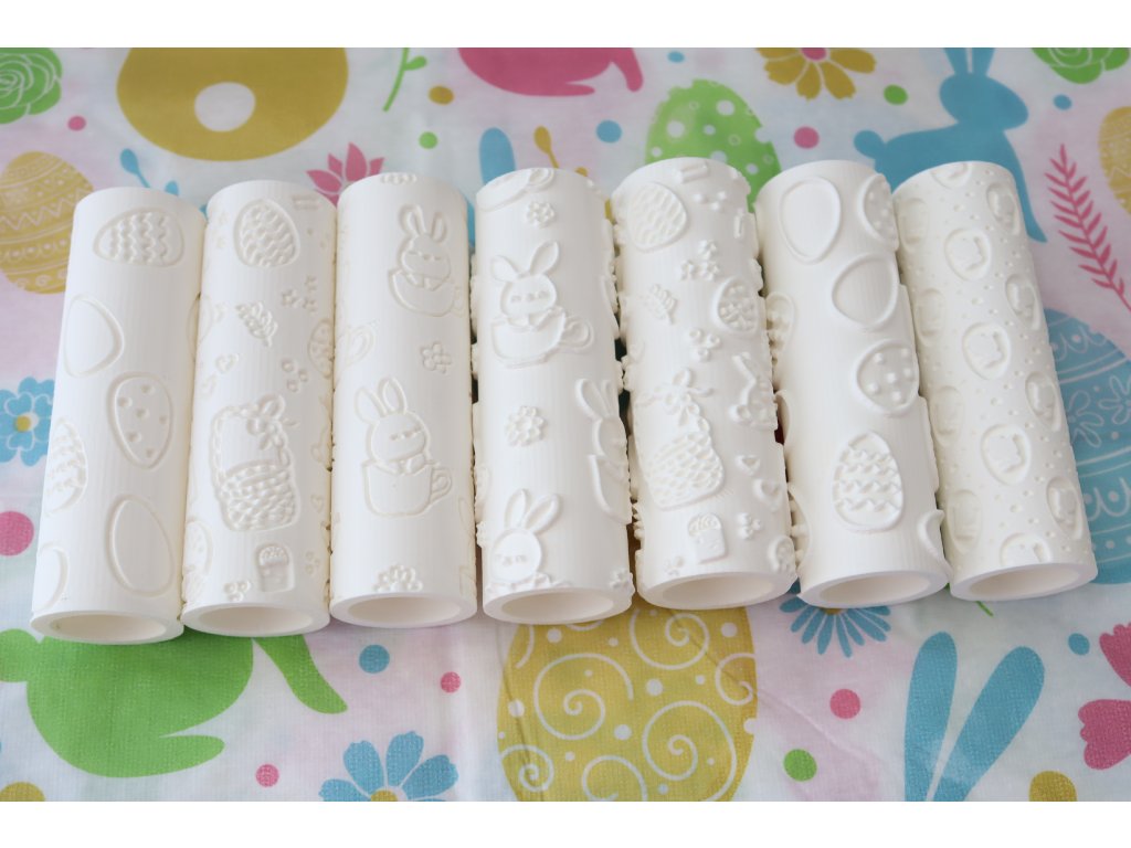 Každý valček ma jedinečnú textúru, ktorá dodá plastelíne, piesku či hline originálny vzor.