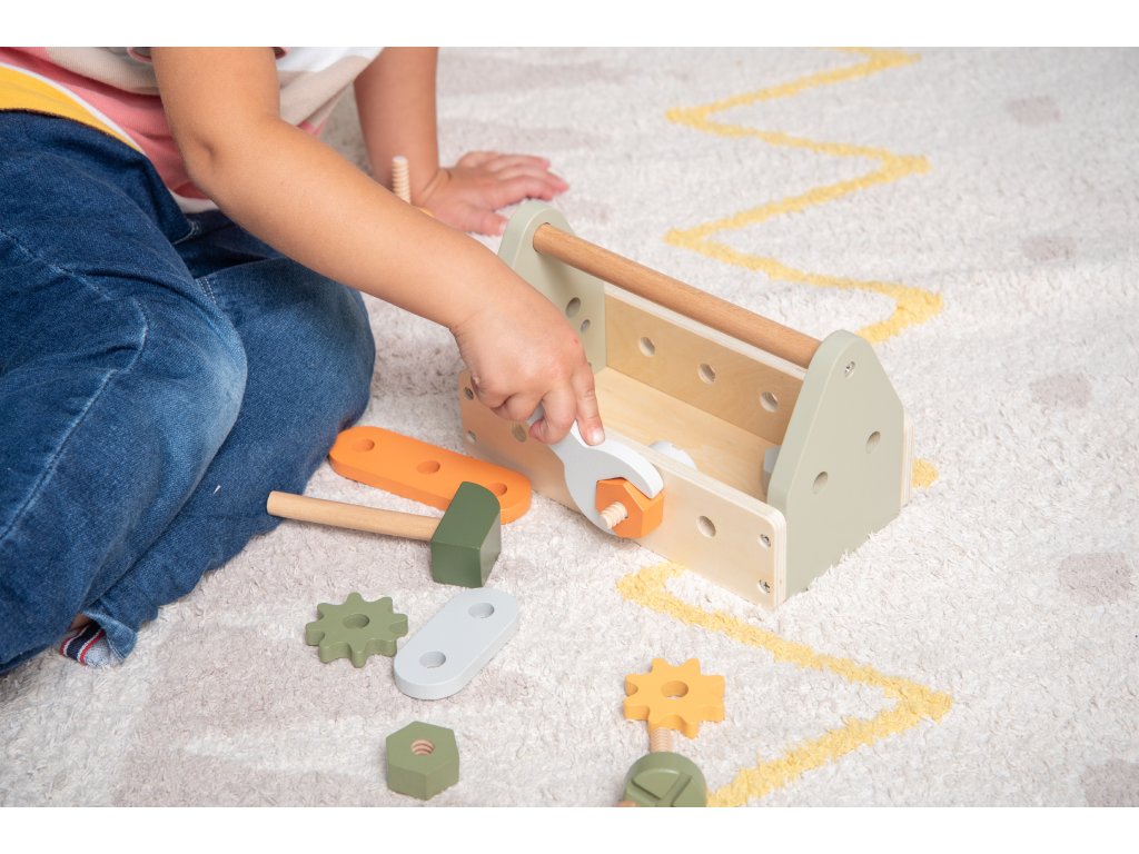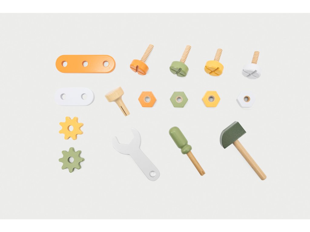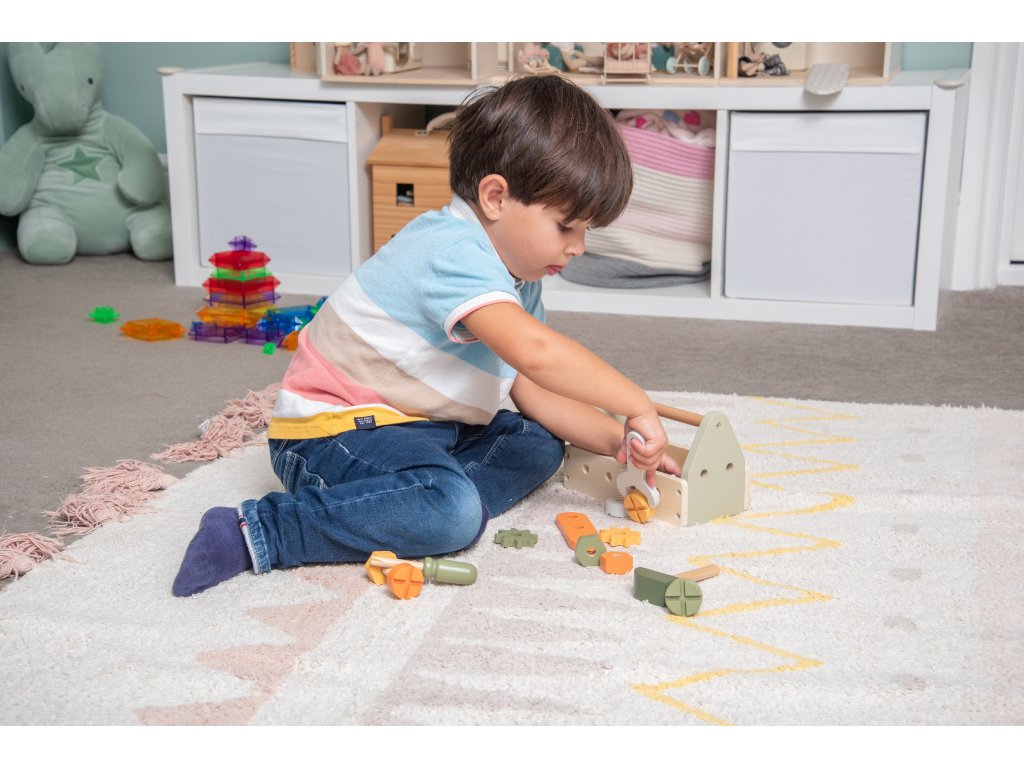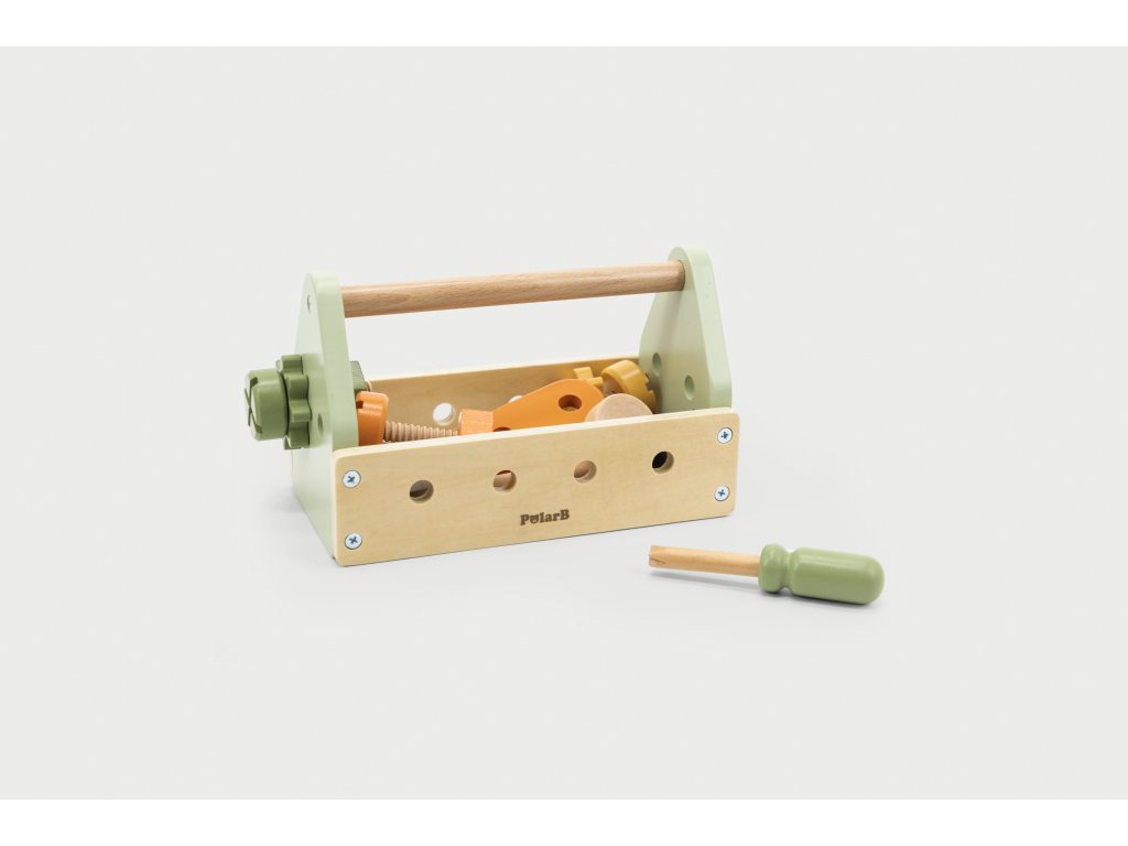 Drevená sada náradia od PolarB je darček, ktorý spája učenie a zábavu. Deti si pri hre precvičia trpezlivosť, presnosť a nadobudnú základné praktické zručnosti. Doprajte vášmu dieťaťu radosť z tvorby s touto krásnou sadou náradia. Deti môžu skúmať rôzne nástroje a rozvíjať schopnosti otáčaním, udieraním a spájaním. PolarB - keď zábava a učenie idú ruka v ruke.