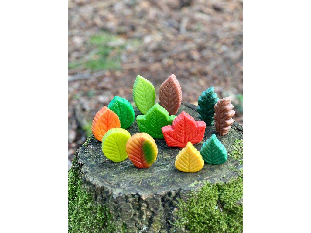 Deti budú s radosťou vytvárať odtlačky v hline na hranie a robiť odtlačky pomocou voskových pasteliek. Úžasné zmyslovo vnímateľné detaily možno ohmatať aj vidieť. Tieto hmatové listy poskytujú veľa príležitostí na hru a učenie: Postavte ich a vytvorte z nich lákavé lesné kulisy alebo ich schovajte do krabice so skutočnými listami, aby ich deti mohli nájsť a opísať.