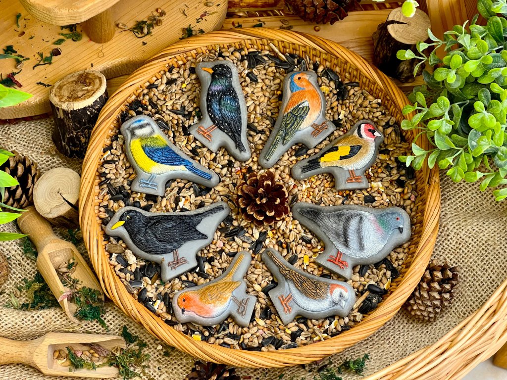 - Zmyslové objavovanie: Hmatové kamene s vtáčimi motívmi poskytujú deťom jedinečný zážitok spoznávať tvary, textúry a detaily zobákov či krídiel.